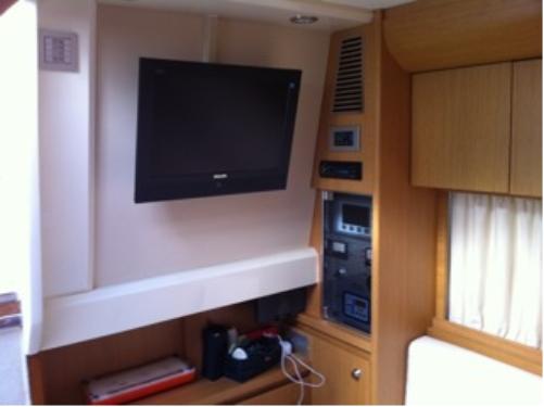Notas internasNotas de la instrumentaciónGPS - PLOTTER-sonda-piloto automático-VHF-timón ángulo-LCD TV + DVD-estéreo 2 CDNotas de armamento-BOW hélice/BOW-aire acondicionado en todas las habitaciones-JOYSTICK para IPS-cabrestante hidráulico eléctrico pasillo-aletas-oferta + motor-sumidero tabla-cojines-cabina solarium toldo-eléctrico escalera-cabina de ducha-baño negro casco con superestructura BEIGE |