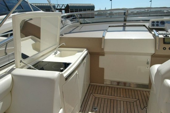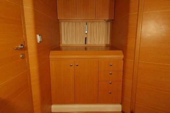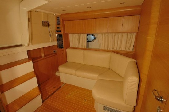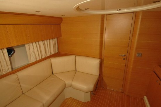 Notas internasCabina con cama doble en proa Camarote con camas literas l Cocina con cristal vitrocerámica, nevera, fregadero Gran comedor con capacidad para l Notas de la instrumentaciónJoystick de IPSGPS Raymarine Brújula FISHFINDER Raymarine VHF Speedlog Piloto automático Aletas Ãngulo del timón Hélice de proa Esposas electrónicas Notas de armamentoSet eléctricoFrigorigero externo Interior de la nevera Aire acondicionado frio Báscula de baño No. 3 TV Caja fuerte Plancha de cerámica en cabina Toldo Toldo cubierta de lona Ducha al aire libre Pasarela hidráulica Besenzoni Pasos de plataforma y cabina de baño de teca Amortiguadores al aire libre Estéreo |