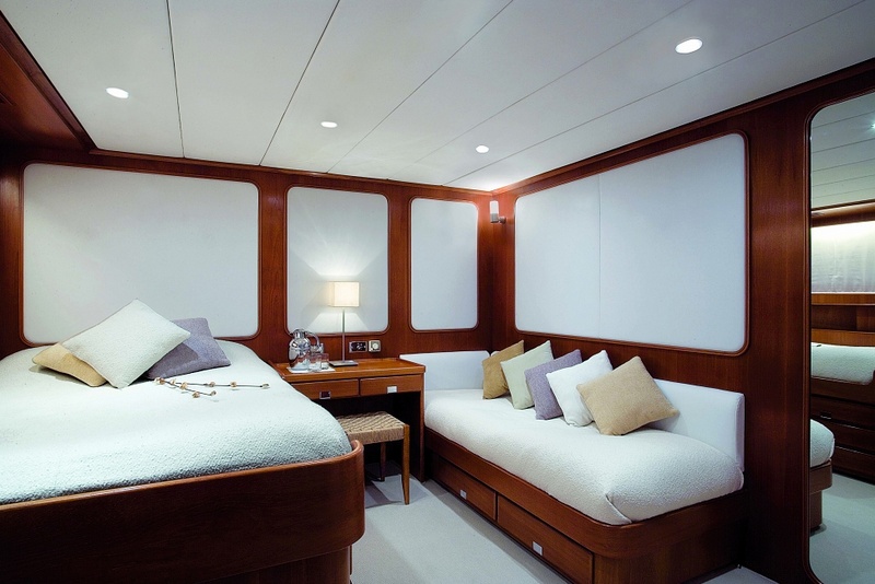 El queche por Perini Navi de 43.3 metros, es una vela barco vela largos trajes y gran rendimiento. Es un buen ejemplo de Yates de lujo, pero equipado con todas las comodidades para copiar todo el mundo en total relajación. distribución de áreas dedicadas a los invitados le permite alojar a once personas en cuatro cabinas. |