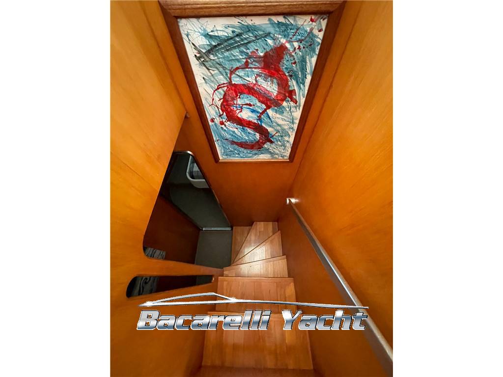 Notas internas3 cabine+ 1 crew 1 cabina armatoriale di pura con letto matrominiale e bagno in camera 1 cabina vip con letto matrimoniale e bagno 1 cabina ospiti con letti in piano e bagno dinette ponte superiore ad "L" cucina full Notas de la instrumentaciónAngolo barrabussola magnetica gps ecoscandaglio radar generatore di corrente Notas de armamentoPasserella idraulicatender aria AC in tutti gli ambienti cucina con frigo casalingo cuscinerie complete e tendaggi generatore mase dissalatore |