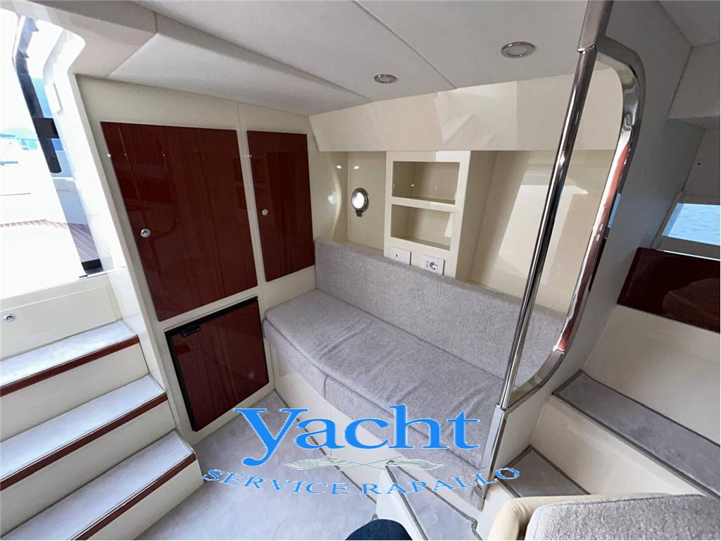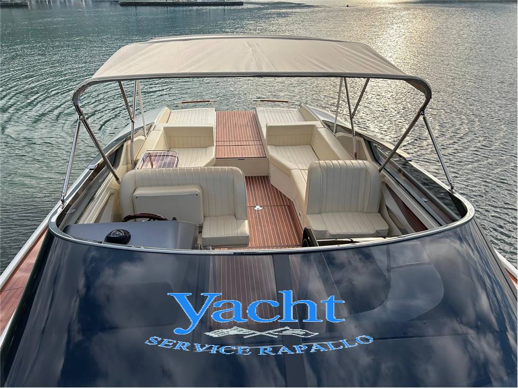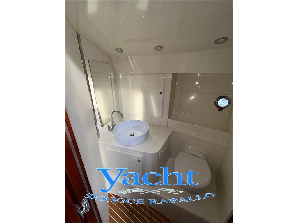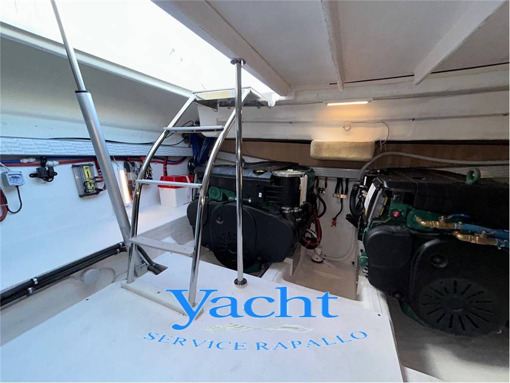 Notas internasMobile con lavello e frigo con cassetto - Porta accesso sottocoperta - Sedile di guida - Sedile copilota – 2 divani - Cuscineria prendisole di poppa - Gavoni porta-tutto - Plancetta di poppa e gradini con rivestimento in teak - Scaletta bagno a scomparsa - Doccia - Copripozzetto (con relativo paletto) - Illuminazione pozzetto led – bimini in accio inox. PLANCIA GUIDA Display multifunzione 12” cartografico/Volvo - Timoneria servoassistita - Volante in mogano - Bussola - Comandi guida elettronici – Comandi flaps con indicatore. SALONE Scala ingresso - Divano - Piano di calpestio rivestito in moquette - Faretti d'illuminazione - Mobile con varie ante - Impianto radio stereo con presa USB e diffusori. CABINA Letto matrimoniale - Armadio guardaroba - Presa di corrente - Faretti led per illuminazione - Gavoni sotto il letto. BAGNO Wc marino con valvola di sicurezza - Mobile con lavabo - Carabottino in teak - Specchio e pensili - Presa di corrente – Doccia a telefono. FINITURE DEGLI INTERNI - Cielini in skai - Mobili in legno - Cuscinerie in cotone - Rivestimento letto in cotone - Piani di calpestio in moquette. Notas de la instrumentaciónDisplay multifunzione 12” cartografico/VolvoNotas de armamentoCOPERTADoppio comando verricello (posto guida e coperta) - Salpa ancora (800W) con “Trefoil” in acciaio inox da 10 kg - Catena zincata D6 da 50 mt - Musone para prua in acciaio inox - Parabrezza in acciaio inox e plexiglass - Osteriggio in acciaio inox ponte prua (apribile) - N. 6 bitte - N. 6 ganci portaparabordi in coperta - Fanali di via regolamentari - Boccola e asta portabandiera - Bottazzo in acciaio inox - Tappo imbarco carburante in ottone cromato - Tappo imbarco acqua in ottone cromato - Tappo svuotamento acque nere in ottone cromato - Apertura vano motore elettrica. IMPIANTO ELETTRICO Caricabatteria completo di cavo banchina - Protezione magnetotermica su utenze quadro - Protezione catodica prese a mare - Aspiratore gas locale motori, vano serbatoi- n. 2 batterie motori da 55 A/h + n. 01 batterie servizi 90 A/h - Staccabatterie elettromeccanici - Avvisatore acustico - Magnetotermico protezione verricello - Prese di corrente - Parallelo batterie - Quadro elettrico di controllo - Protezione con differenziale salvavita 220 V. SISTEMA ANTINCENDIO Estintori portatili regolamentari – Impianto automatico nel locale motore con bombola, comando manuale nella plancia di comando. IMPIANTO CARBURANTE Serbatoio in acciaio inox da 1080 l – Elettro-valvole d' intercettazione carburante. IMPIANTO IDRICO 1 pompa elettrica manuale/automatica per locale motore - 1 pompa elettrica prua manuale/automatica - 1 pompa a mano - Serbatoio acqua dolce da 350 l - Pompa autoclave – Boiler acqua calda con scambiatore – Serbatoio acque nere – Serbatoio acque grigie. |
