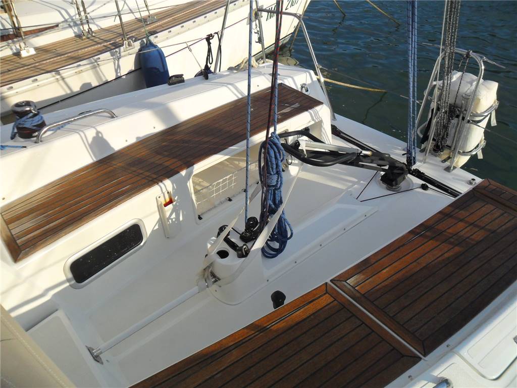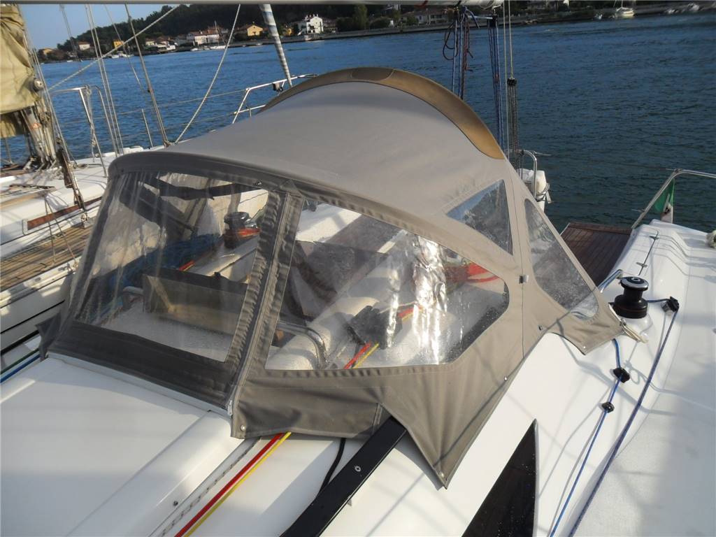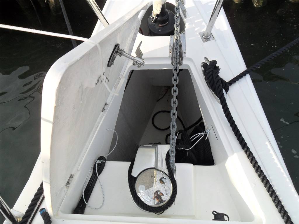 Notas de armamentoDelfiniera in composito con alloggio ancora e punto di mura asimmetrici – Salpancora elettrico – Ancora Delta (35 mt catena + 25 mt. tessile)- Attrezzatura di coperta Harken (rulla fiocco, trasto, winch, carrelli randa e genoa, pastecche genoa) – Randa full batten con sistema carrelli Harken battcar – Gennaker e Code 0 – Spray hood – Eco, log e stazione del vento – Due bussole su paramare – Lazy bag – Paterazzo regolabile – Pulpito di poppa con alloggio zattera – Scaletta bagno acciaio e teak – Rivestimento delle sedute del pozzetto in teak – Tendalino pozzetto – Tavolino pozzetto amovibile in teak e acciaio – Cuscineria pozzetto tessuto sunbrella – Interni in teak (pagliolo) e rovere (mobili) – Tende oscuranti - Fornello a due fuochi – Forno a gas – Frigo – Wc – Boiler - Plotter Raymarine – Gps - Vhf Raymarine – Radio cd con casse anche in pozzetto – Dotazioni di sicurezza complete entro 12 miglia