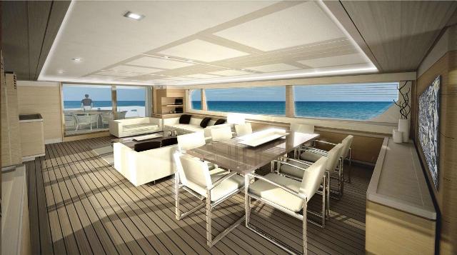 Notas de armamento Aircon tropical (salon + cabins + crew) Generator Panda 55200 W diff, from Kohler std. Generator hours: 5137 & 5300 (October 2012) Hydraulic Stern Thruster 58 hp (double propeller) UV water sterilizer Jacuzzi on Sundeck Bimini Top on Sundeck (manual) Shower under radar arch s/s mast at bow w/light 360 º on top Installation of diving kit + air compressor s/s rail in garage for hanging diving gear Teakbase in garage for 3 diving bottles Addit. Washer/Dryer Removable Bimini at aft of UD Horn s/s Kahlenberg, mod. S-2 diff. from std. Steering wheel in aluminium with leather, diff. from std. PC: socket NMEA for PC/NAV data connect in main bridge Data switch for networking 10/100MB D-Link Wi-Fi s/s name writing w/backlighting for both sides TVCC: camera mot. Pan/Tilt 2 Cameras on aft side of ceiling for manoeuvring Cleats disappearing Cover for crane 15 mt. add. shore electric cable Add. horizontal dashboard panel (port side) Add. socket 230V + fax Add. 125L fridge Dimmer light upper deck & cockpit 150 m Anchor chain (diff. from std.) Bitecnomare Gangway (diff. from std.) Control station in cockpit fixed w/cover Porthole mosquito nets Solas type A safety-rafts (diff. from std.) Alarm system via GSM Socket: External watertight 220V 24V external electrical outlet Raising device for 32†TV AUDIO/VISUAL: TV32†LCD color 16/9 add. TV26†LCD color 16/9 add. TV19†LCD in captains cabin DVD/FM/USB /I-Pod/Aux. Panasonic Amplifier in VIP cabin DVD/FM/USB/front Input/Aux.LG Amplifier in Guest DVD/FM/USB/front Input/Aux.LG Amplifier in Crew RP-1 integrated RF receiver for IR distribution and macro enable + IR Distributer + IR Flasher Seatrex Marine 2 way satellite tracking unit DF-Base / Video – Audio – Photo sharing server 3D New Generation Blue Ray HD 1080p Playback 3 Audio Zone license for music playback all around, control via RTI – Via any Windows mobile, via iPhone DF-Link / VOD – 3D Library Scion Technology digital switcher distributor w/16 inputs and 16 outputs Scion IR remote for crew Digital receiver converter for each Plasma Smartwi for smart card sharing subscription on one card for all TV´s VGA / PAL Video converter MISCELLANEOUS: Central right guest cabin w/2 separate beds, diff. from king size Pullman bed in guest cabin Shower instead of bathtub in Master bathroom Shower instead of bathtub in aft VIP bathroom Bulwark in natural Teak Pulpit on Sundeck Galley floor in wenge wood (diff. from std.) Lower deck lobby floor in Iroko (diff. from std.) Bathroom floors in Iroko w/marble frame Wenge frames for salon side windows (diff. from std.) Bathroom ceilings an walls in white lacquered (diff. from std.) Add. storage in master bathroom (diff. from std.) Cover in PVC for Life raft Aft VIP shower walls in marble noir (half height) Upper deck: Dedon Panama chair w/ armchair ------------------------------- Aria condizionata Tropicale (salone + cabine + equipaggio) Generatore Panda 55.200 W diff, da Kohler std. Generatore Ore: 5137 e 5300 (ottobre 2012) Elica di poppa 58 CV (doppia elica) sterilizzatore Acqua UV Jacuzzi sul Sundeck Bimini top su Sundeck (manuale) Doccia sotto arco radar s / s albero a prua w / luce a 360 ° sulla parte superiore Installazione di immersione + kit compressore d'aria s / s ferroviario in garage per appendere attrezzatura per l'immersione Teakbase in garage per 3 bottiglie di immersione Addit. Lavatrice / asciugatrice Bimini a poppa Rimovibile Horn s / s Kahlenberg, mod. S-2 diff. da std. Volante in alluminio con pelle, diff. da std. PC: presa NMEA per PC / NAV dati collegare in ponte principale Interruttore per la rete dati 10/100MB D-Link Wi-Fi s / s nome scrittura w / retroilluminazione per entrambe le parti TVCC: telecamera mot. Pan / Tilt 2 telecamere sul lato posteriore del soffitto di manovra Tacchetti scomparsa Copertura per gru 15 mt. aggiungere. riva cavo elettrico presa 230V + fax Frigorifero 125L Dimmer luce ponte superiore e della cabina di guida Catena per ancora 150 m (diff. da std.) Bitecnomare Passerella (diff. da std.) Stazione di comando in pozzetto fissa w / coperchio Zanzariere per oblò zattere di sicurezza (diff. da std.) Sistema di allarme via GSM Socket: esterno a tenuta stagna 220V 24V esterna presa elettrica Dispositivo di sollevamento per TV da 32 " AUDIO / VIDEO: TV32 "LCD a colori 16/9 add. TV26 "LCD a colori 16/9 add. TV19 "LCD in cabina capitani DVD / FM / USB / I-Pod/Aux. Amplificatore Panasonic in cabina VIP DVD / FM / USB / frontale di ingresso / Aux.LG amplificatore in Guest DVD / FM / USB / frontale di ingresso / Aux.LG amplificatore in Crew RP-1 integrato ricevitore RF per la distribuzione IR e macro + distributore di abilitazione IR + IR Flasher Seatrex Marine 2 satellite le unità di monitoraggio DF-Base / Video - Audio - Foto server Generation condivisione 3D Novità Blu Ray HD 1080p 3 Licenza Zona Audio per la riproduzione di musica tutto intorno, controllo tramite RTI - Via qualsiasi cellulare di Windows, tramite iPhone DF-Link / VOD - Biblioteca 3D Scion tecnologia digitale switcher distributore W/16 ingressi e 16 uscite Scion telecomando a raggi infrarossi per l'equipaggio Ricevitore convertitore digitale per ogni plasma SmartWi per la sottoscrizione intelligente condivisione scheda su una scheda per la TV di tutti VGA / PAL Video converter VARIE: Cabina ospiti 2 separati letti , diff. da king size letto Pullman in cabina ospiti Doccia invece della vasca da bagno nel bagno master Doccia invece della vasca da bagno in cabina VIP a poppa Pulpito su Sundeck Piano Cambusa in legno wengè (diff. da std.) Pavimenti bagno in Iroko w / marmo cornice Cornici wengè per salone di finestre laterali (diff. da std.) Soffitti un bagno pareti in laccato bianco (diff. da std.) gavone aggiuntivo in bagno padronale (diff. da std.) Rivestimento in PVC per zattera di salvataggio pareti doccia della VIP di poppa in marmo noir Upper Deck: sedia Dedon Panama