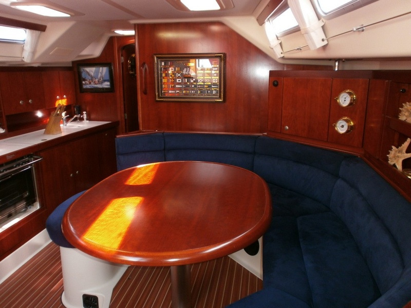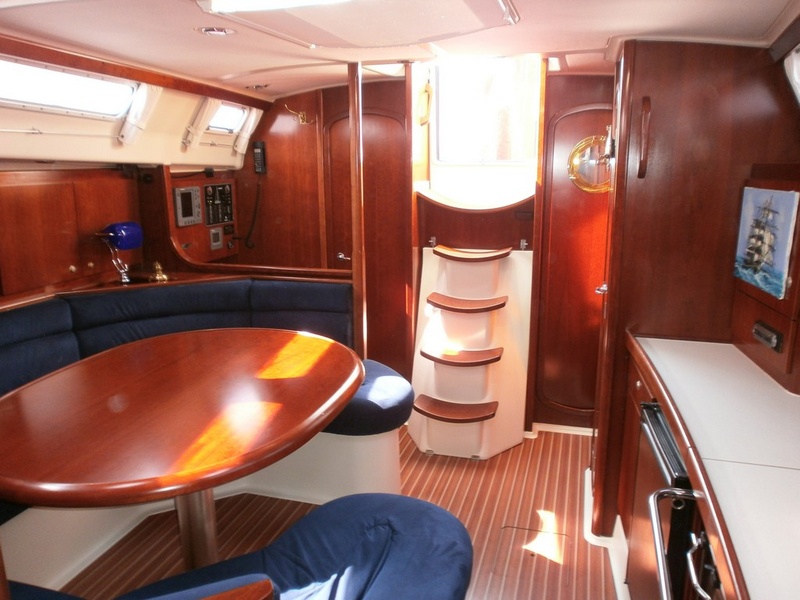 Notas internas-Interiores caoba y telas de Alcántara. -Cocina amurallada al puerto con fregadero, estufa 3 quemadores de gas, horno y frigorÃfico. -Correspondencia y comedor con mesa grande y sofá en forma de C en el lado de estribor. Notas de la instrumentaciónTridata Raymarine de eco, registro, viento + correspondencia, piloto automático, Radar RL 70.Notas de armamentoCabrestante eléctrico de ancla, ancla Bruce, cadena de acero inoxidable. Tornos eléctricos NR 2, cubierta Harken de engranaje. Bomba de agua de mar, calefacción. Ducha en bañera, capota, cubiertas de rueda, manteles, cojines bien. Rullafiocco, vela mayor y la horca + carbón vela mayor 2011 y arco de dacron original, gennaker. |