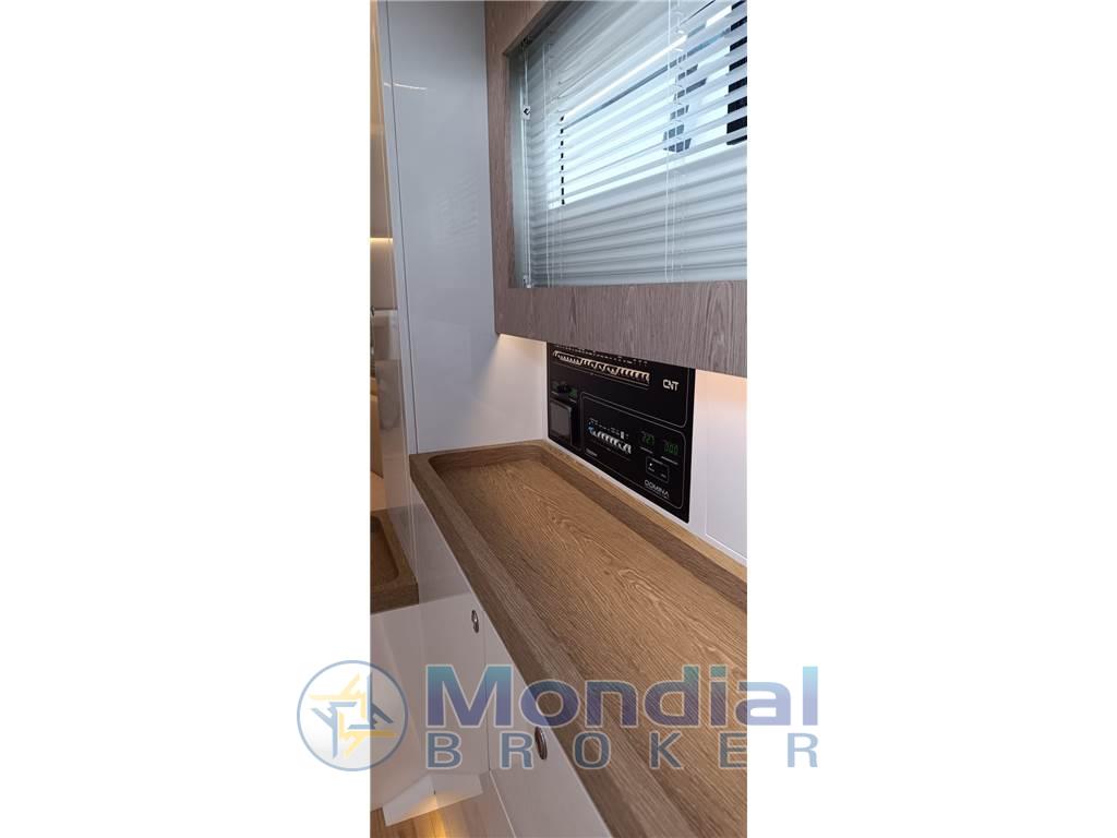 Notas internasNotas de la instrumentaciónGPS/Plotter doppio schermo 12" Garmin - ecoscandaglio - pilota automatico - VHF.Notas de armamentoElica di prua elettrica - flap interceptor Humphree - impianto stereo Fusion high performance - tenda filtra sole a poppa con pali in carbonio - tenda filtra sole a prua con pali in carbonio - dinette di prua convertibile in prendisole - dinette di poppa convertibile in prendisole - caricabatterie con presa corrente banchina - ancora e catena inox - mobile cucina in pozzetto con frigo, lavello e piano cottura - luci sommerse a poppa - passerella in carbonio manuale - TV LCD - antenna TV. |