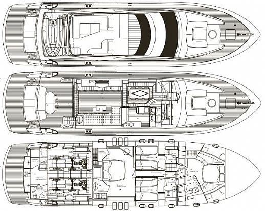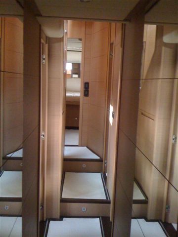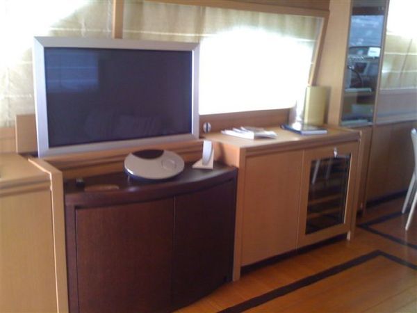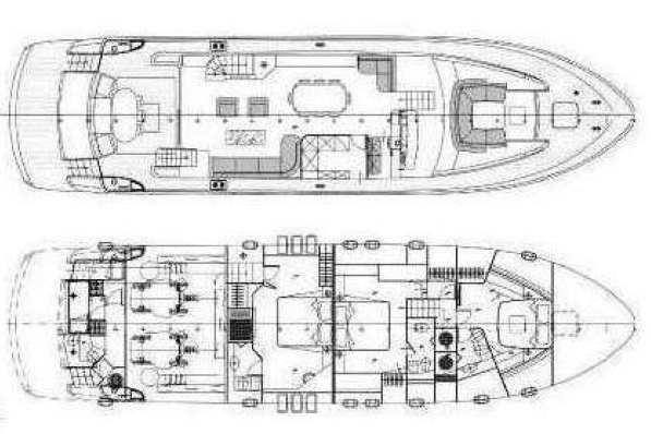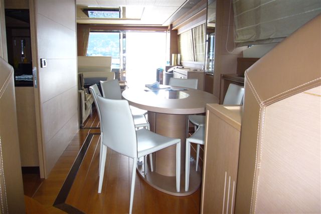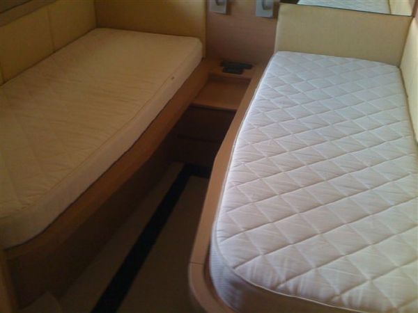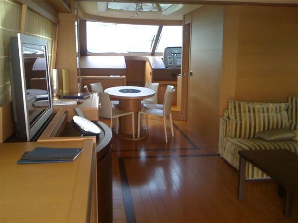 Notas internas4 camarotes, 4 baños, fore vip cabina con cama de matrimonio en la isla con su cuarto de baño con cabina de ducha separada en el centro de la embarcación con la cama de la isla con su cuarto de baño con ducha separada, 2 cabinas dobles con su baño y ducha, sala de estar con comedor conjunto en la mesa de comedor y 6 sillas, cocina totalmentela parte de popa de la sala de estar está equipada con un gran sofá y área de TV, la cabina de la 1 tripulación con dos camas y baño privado, roverere pisos interiores de blanqueado, teca de mate