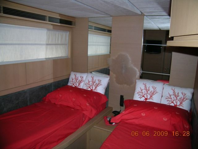 Notas internasNotas de la instrumentaciónCadena eléctrica, ángulo del timón indicador + repetidor en la mosca, Panel de Control, doble verificación alarmas Auopilota, Ray marino E120 panel + trazador de funciones mosca, GPS, Radar, Echo 48 mgl, Tridata color digital control paneles, dash + 2 mosca, faros x arco de iluminación del área + buzos 4 faros de amarre.Notas de armamentoTodos Lcd Tv planta, DS, decodificador/reproductor de cd/dvd, PS3 en comedor, Intercom, teléfonos + sentó + antena terrestre digital, pc e internet, cámaras, cajas de seguridad digitales, nevera, secador 4, lavavajillas, Central de vacÃo, bodega en el comedor, Autoclave, calderas, aire acondicionado, unidades de desalinización. Colchones diferentes. cabrestante de popa 2 + 1 en la proa, Crane, escalas de baño eléctricos, plataforma, oferta + FB. Teca Interior, paredes y muebles en Robles, mat techos en Alcántara. |