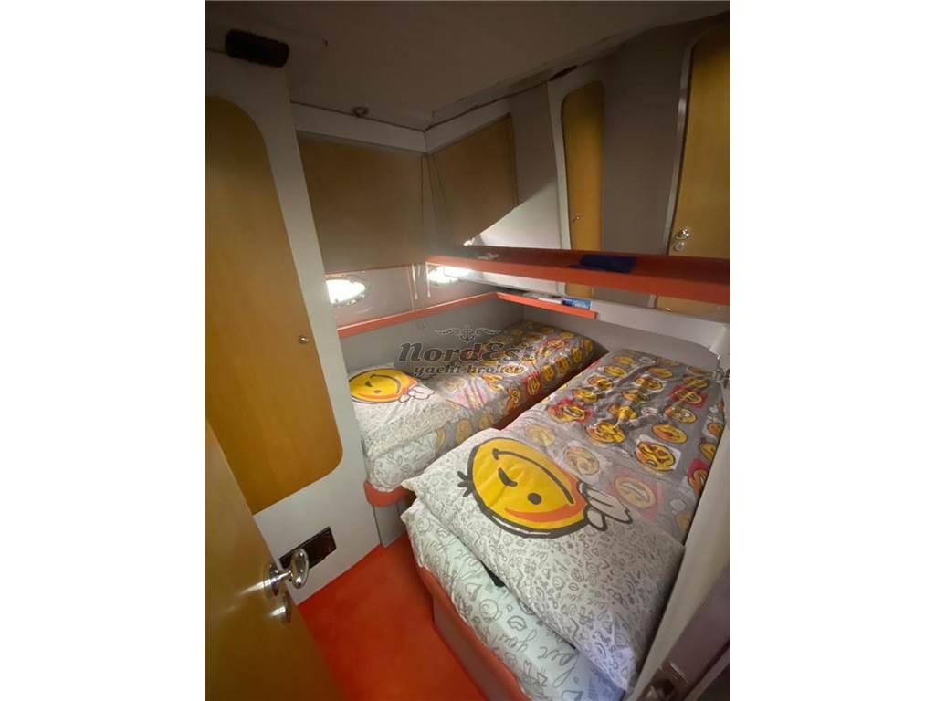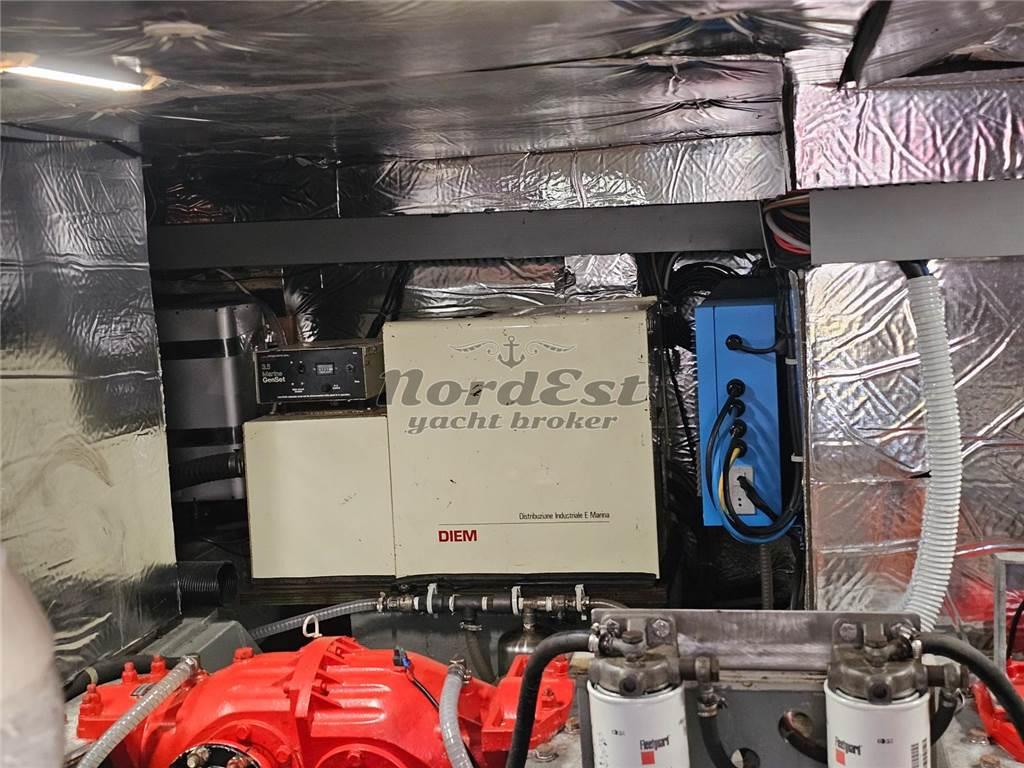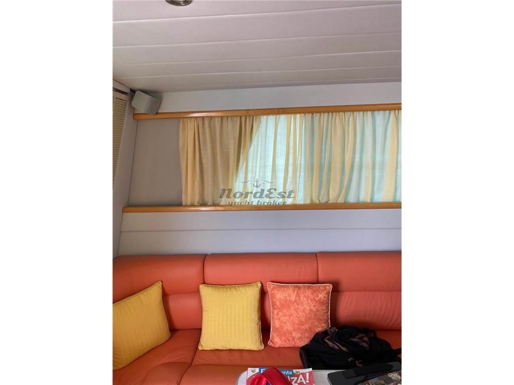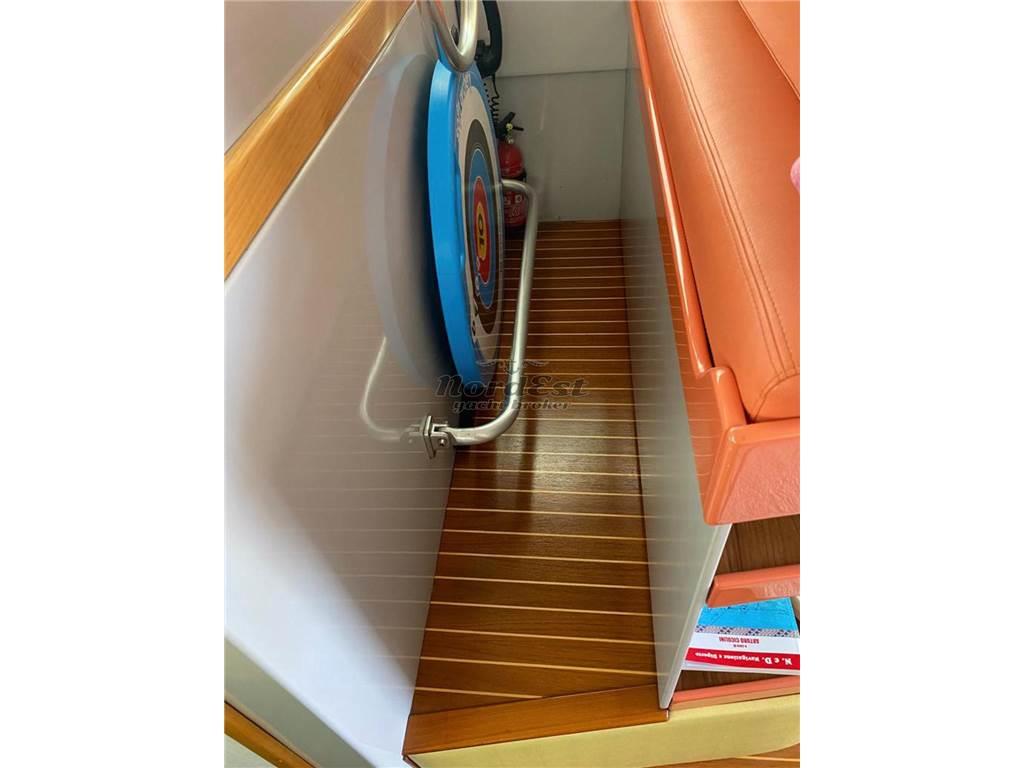 Notas internasInterni: DESCRIZIONE INTERNI Cucina al piano inferiore attrezzata 1 cabina armatoriale di prua con WC elettrico, bidet e doccia 1 cabina doppia con WC elettrico e bidet (porta sia da cabina che da corridoio per ospiti) ----- Impianto stereo Impianto TV Tv Bagni: 2 Cabine: 2 Posti letto: 4+2 Cucina Frigorifero Notas de la instrumentaciónPilota automatico: Presente Ecoscandaglio: Presente GPS: Presente Plancetta: Presente Vhf: Presente Notas de armamentoDESCRIZIONE IMPIANTISTICA 2 frigoriferi 12V/220 V Cucina con piano in granito, 2 fornelli a induzione e lavello inox Impianto acqua sanitaria con ingresso da banchina + autoclave con vaso espansione, boiler per acqua calda. Sistema di navigazione GPS cartografica ed ecoscandaglio Raymarine Gruppo elettrogeno 3.5 kW 4 x batterie servizi + 2 x batterie motori con smart shunt per monitoraggio stato carica da applicazione Caricabatterie Victron Energy Skylla 12V/70 A a tre uscite Isolatore galvanico di banchina Antenna TV Glomex VHF Tendalino fly su misura con tubolari inox Ø 30mm e teli di copertura perimetrale Teli copertura totale pozzetto e telo copertura totale Fly Ancora inox con 50metri di catena Plancetta di poppa maggiorata e rivestita in teak REFIT 2023/2024: Antivegetativa Scafo + lucidatura murate Plexiglas Fly sostituiti Manette interne e fly Ultraflex nuove con sostituzione cavi Cuscinerie interne ed esterne Rivestimento teak plancetta di poppa Nuovo caricabatteria maggiorato Victron Energy Skylla 12V/70 A a tre uscite Bitte e passacima di poppa e prua sostituite in inox (le vecchie erano di alluminio) Tappi imbarco gasolio e acqua inox sostituiti con relative tubazioni Prese a mare e valvole di scarico inox nuove, con nuove tubature, anche per i due WC Ancora e catena 2023 Assi elica rettificati e nuove eliche bronzo alleggerite 2024 Tendalino fly su misura con tubolari inox Ø 30mm e teli di copertura perimetrale Interventi motori: Turbine revisionate 2023 Manicotti 2023 Pulegge e cinghie 2023 Riser scarico 2023 Cardani e gear box revisionate 2023 Scambiatori di entrambi i motori e invertitori agosto 2024 Tagliando motori 2023, 2024, 2025 con sostituzione refrigerante, olio e filtri, filtri gasolio, anodi Sostituiti entrambi i collettori di scarico del motore sx nel 2024 e motore portato a zero con smontaggio della testata e sostituzione preventiva delle guarnizioni (NO guarnizioni bruciate!) Nuovo rivestimento fonoassorbente e antincendio sala macchine ----- Impianto antincendio Copertura pozzetto Cuscineria prendisole Doccia esterna Flaps |