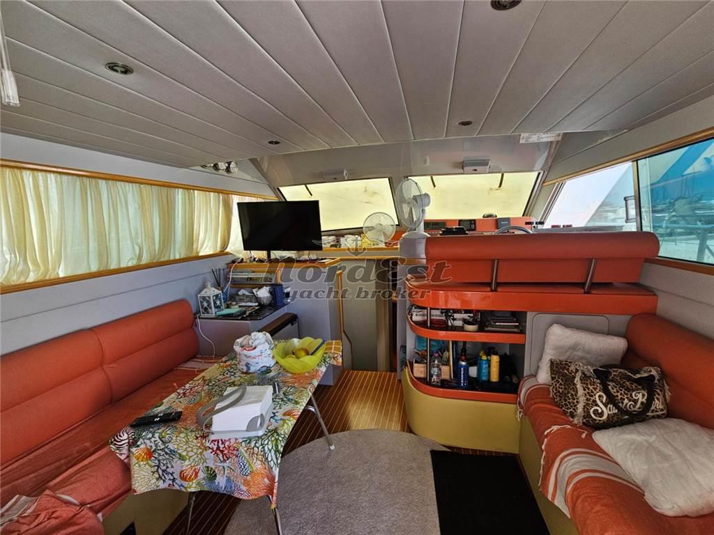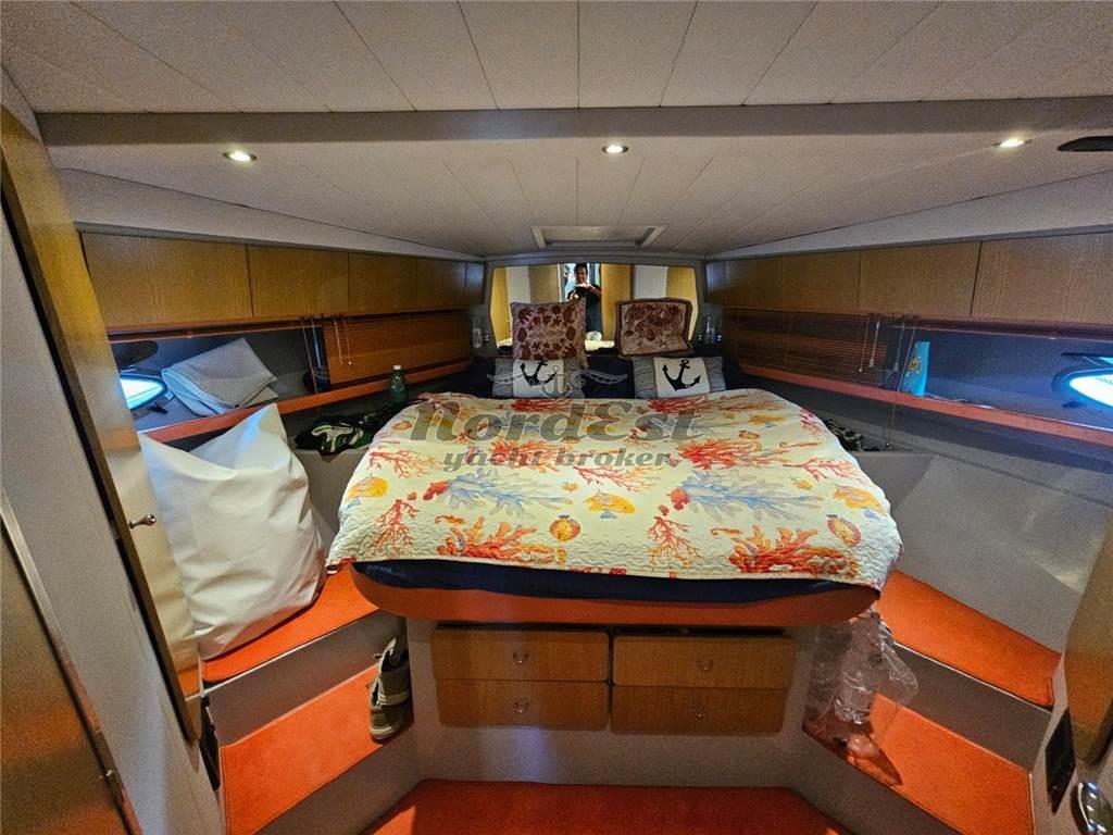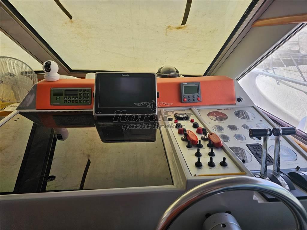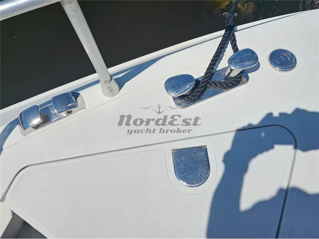 Notas internasInterni: DESCRIZIONE INTERNI Cucina al piano inferiore attrezzata 1 cabina armatoriale di prua con WC elettrico, bidet e doccia 1 cabina doppia con WC elettrico e bidet (porta sia da cabina che da corridoio per ospiti) ----- Impianto stereo Impianto TV Tv Bagni: 2 Cabine: 2 Posti letto: 4+2 Cucina Frigorifero Notas de la instrumentaciónPilota automatico: Presente Ecoscandaglio: Presente GPS: Presente Plancetta: Presente Vhf: Presente Notas de armamentoDESCRIZIONE IMPIANTISTICA 2 frigoriferi 12V/220 V Cucina con piano in granito, 2 fornelli a induzione e lavello inox Impianto acqua sanitaria con ingresso da banchina + autoclave con vaso espansione, boiler per acqua calda. Sistema di navigazione GPS cartografica ed ecoscandaglio Raymarine Gruppo elettrogeno 3.5 kW 4 x batterie servizi + 2 x batterie motori con smart shunt per monitoraggio stato carica da applicazione Caricabatterie Victron Energy Skylla 12V/70 A a tre uscite Isolatore galvanico di banchina Antenna TV Glomex VHF Tendalino fly su misura con tubolari inox Ø 30mm e teli di copertura perimetrale Teli copertura totale pozzetto e telo copertura totale Fly Ancora inox con 50metri di catena Plancetta di poppa maggiorata e rivestita in teak REFIT 2023/2024: Antivegetativa Scafo + lucidatura murate Plexiglas Fly sostituiti Manette interne e fly Ultraflex nuove con sostituzione cavi Cuscinerie interne ed esterne Rivestimento teak plancetta di poppa Nuovo caricabatteria maggiorato Victron Energy Skylla 12V/70 A a tre uscite Bitte e passacima di poppa e prua sostituite in inox (le vecchie erano di alluminio) Tappi imbarco gasolio e acqua inox sostituiti con relative tubazioni Prese a mare e valvole di scarico inox nuove, con nuove tubature, anche per i due WC Ancora e catena 2023 Assi elica rettificati e nuove eliche bronzo alleggerite 2024 Tendalino fly su misura con tubolari inox Ø 30mm e teli di copertura perimetrale Interventi motori: Turbine revisionate 2023 Manicotti 2023 Pulegge e cinghie 2023 Riser scarico 2023 Cardani e gear box revisionate 2023 Scambiatori di entrambi i motori e invertitori agosto 2024 Tagliando motori 2023, 2024, 2025 con sostituzione refrigerante, olio e filtri, filtri gasolio, anodi Sostituiti entrambi i collettori di scarico del motore sx nel 2024 e motore portato a zero con smontaggio della testata e sostituzione preventiva delle guarnizioni (NO guarnizioni bruciate!) Nuovo rivestimento fonoassorbente e antincendio sala macchine ----- Impianto antincendio Copertura pozzetto Cuscineria prendisole Doccia esterna Flaps |