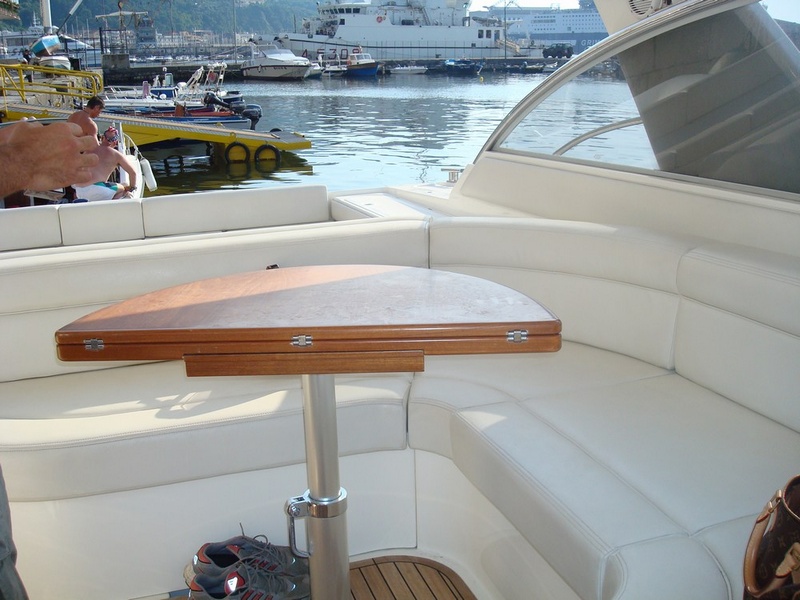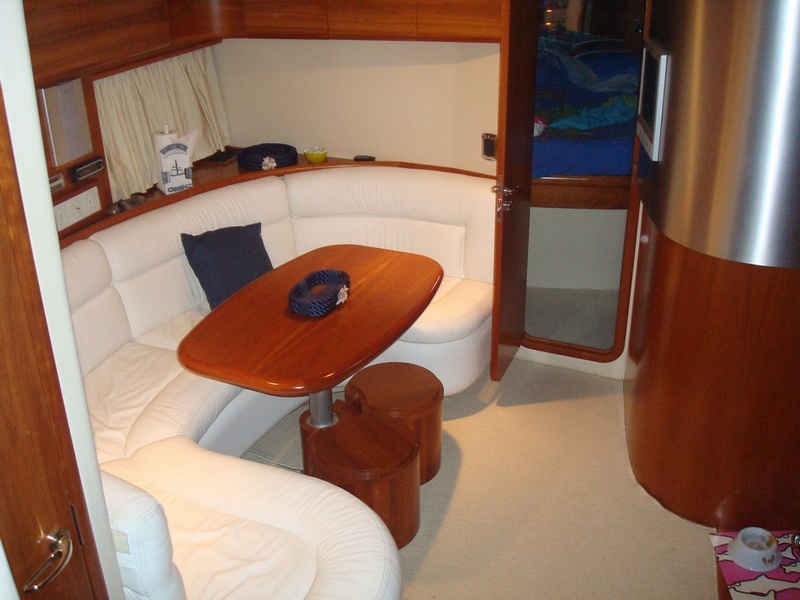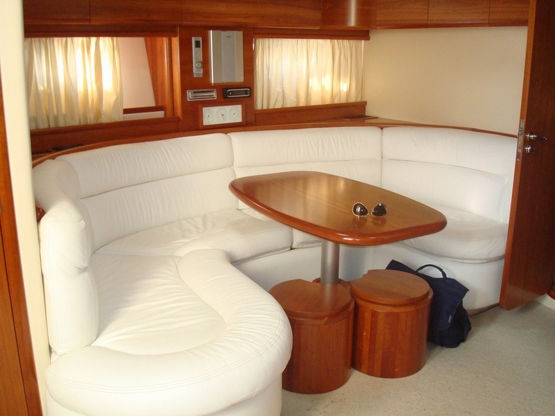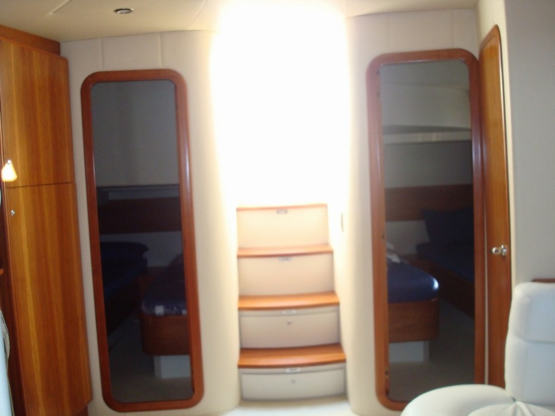 Notas internas-Cereza Interior, Sofás de cuero. Notas de la instrumentación-RADAR-PILOTO AUTOMÃTICO-GPS/PLOTTER-SONDA-VHF.Notas de armamento-Generador-aire acondicionado-funcionamiento propulsor en el arco-Watermaker-Passerella idraulica-electrónico controles-Stern Tornos-Tender con motor fb-móviles en cabina máquina de hielos y fregadero-toldos-cabina y teca plataforma popa-LCD-TV en el comedor-Dolby Surround System. |