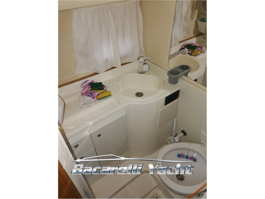 Notas internas1 cabina a pura con letto matrimoniale 1 cabina di poppa con letto matrimoniale 1 dinette con tavolo trasformabile 1 cucina con fuochi e lavello 1 bagno con doccia Notas de la instrumentaciónRadio VhfGps Bussola magnetica angolo marra Notas de armamentoTavolo di poppa trasformabile idraulicoPortellone salamacchine idraulico Boiler Gps |