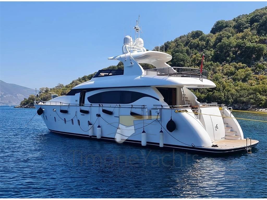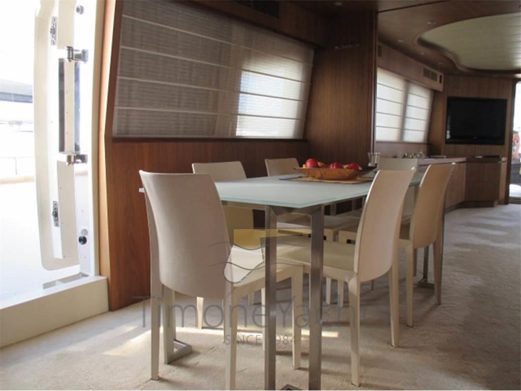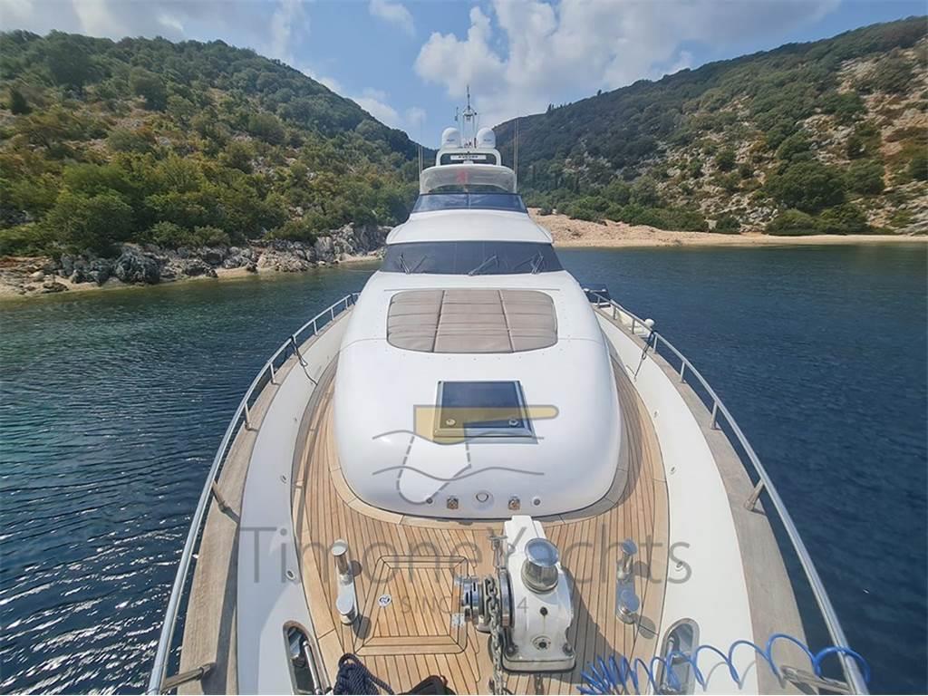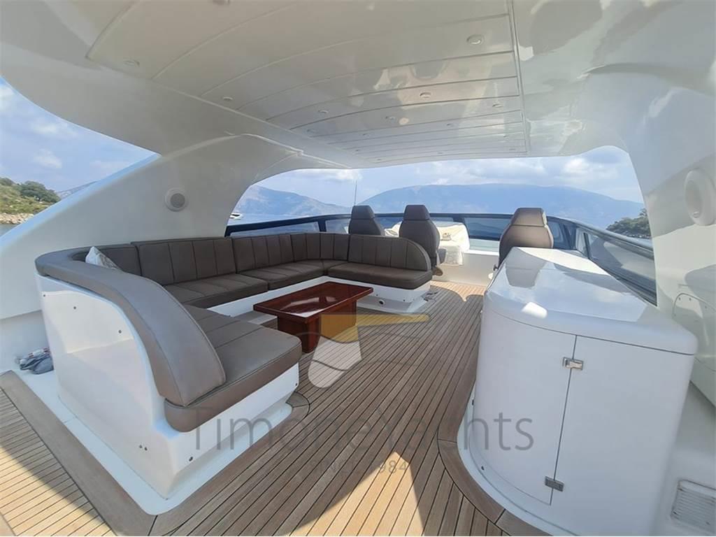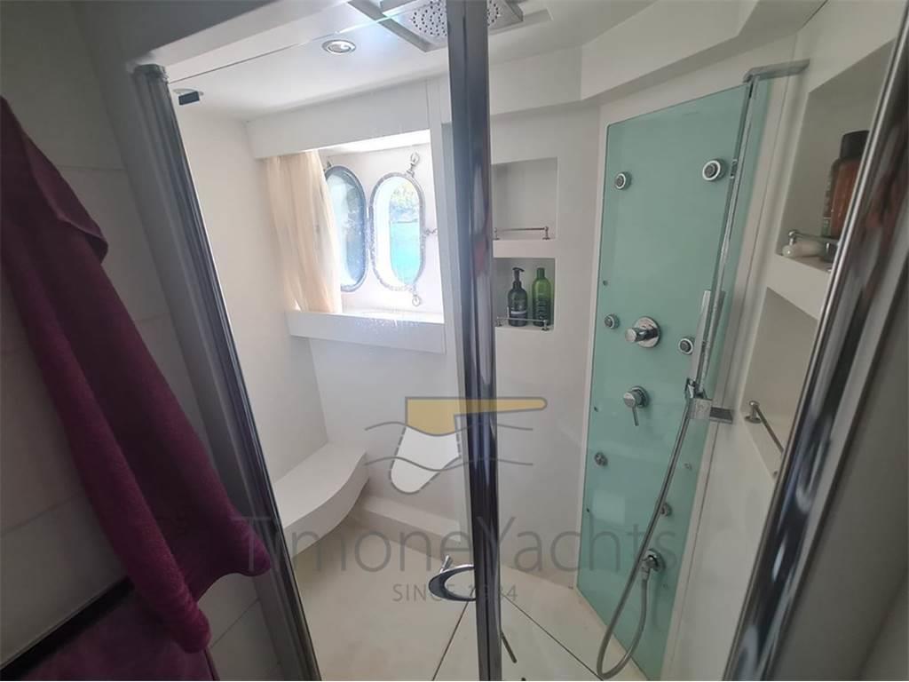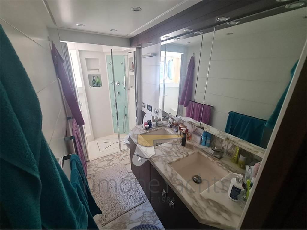 Notas internasClassico lower deck con Armatoriale a tutto baglio, vip a prua e le due cabine ospiti doppie ai lati corridoio. Ogni cabina con bagno in camera. Crew a prua con ingresso dal ponte, 2 letti un bagno. Notas de la instrumentaciónAIS, Contametri catena, Ecoscandaglio, Interfono, Pilota automatico, Plotter, Radar, Sedile Copilota.Notas de armamentoAllestimento tecnico e di coperta:Camminamenti laterali in teak, Doccia esterna, Elica di prua - bow thruster, Fari fissi a poppa, Faro orientabile, Garage per tender, Hard top, Impianto antincendio, Indicatori Flaps, Lavaggio catena, Luci subacquee, Passerella, Porta laterale, Pozzetto Teak, Presa 220V banchina, Tavolo pozzetto, Tender, Tromba, Winch tonneggio di poppa, Winch tonneggio di prua. Dotazioni domestiche di bordo: Aria condizionata, BBQ/ Grill, Prese interne 12v, Prese interne 220v, Pressarifiuti, Riscaldamento, Serbatoio Acque Nere, WC marino elettrico. Intrattenimento: Altoparlanti, Antenna Satellitare TV, Decoder satellite, Digitale Terrestre, Home Theater, Meccanismo saliscendi per TV, Radio AM/FM, Stereo, TV. Cucina ed elettrodomestici: Aspirapolvere centralizzato, Congelatore, Forno, Frigorifero esterno, Frigorifero interno, ICE Maker, Lavastoviglie, Lavatrice, Macchina caffè, Piastra elettrica, Piastra in vetroceramica. Tappezzerie: Copripozzetto, Cuscineria completa, Cuscineria di poppa, Cuscineria di prua, Cuscineria fly, Cuscineria Pozzetto, Telo Copertura Fly, Telo copriconsolle, Tendalino. |
