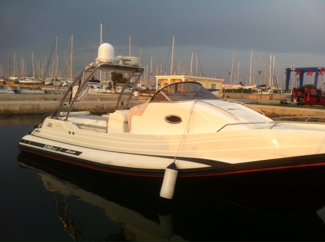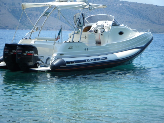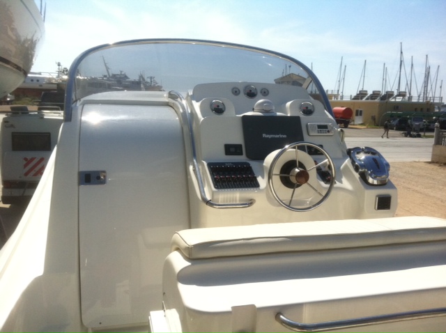 | mbarcazione versione skydeck paraticamente fulloptionals, perfetta praticamente nuova, solo 80 ore di moto, • Cuscineria cabina completa (n° 1 letto matrimoniale prua +N° 1 a poppa) • Rivestimenti in legno di acero per interno cabina • N° 8 cuscini vari colori per letto prua (solo per Limited) • N° 5 cuscini vari colori per letto poppa (solo per Limited) • N° 2 cuscini con ricamo Sky Deck (solo per Limited) • N. 3 specchi cabina • N° 2 specchi in bagno • N° 1 specchio a figura intera su porta ingresso bagno • N° 9 armadietti in legno per cabina • N° 1 armadio con appendiabiti • N° 1 mobile con 2 cassetti e 2 armadietti e piano appoggio con ferma oggetti inox • N° 3 comodini • N° 4 luci di cortesia per testate letti • Tavolino interno cabina • N° 6 faretti a luce fredda per cabina • N° 3 faretti a luce fredda per bagno Garmin GPS MAP 5012C EVENTUALE Touchscreen acolori + Ecoscandaglio, Radar, VHF - Kit multimediale: Sistema Audio Video, EVENTUALE Tv Digitale Terrestre,DVD-CD-MP3-Dvix, iPOD Video, LCD 17â€, EVENTUALE sistema elettricodiscesa TV da cielino - • Plancetta poppa con scaletta a scomparsa (solo per Limited) • Plancetta poppa con passerella fissa e predisposizione per passerella elettrica (solo per Limited) • Cuscineria pozzetto poppiero completa • N° 1 lavandino con tagliere nel pozzetto esterno • Prendisole di poppa • Prendisole di prua • Timoneria idraulica • Parabrezza con telaio Inox • Porta ingresso cabina scorrevole in plexiglass • N° 3 oblò inox con zanzariere • Passo uomo a scomparsa con zanzariera e tendina oscurante • Lavandino inox con miscelatore per interno bagno cabina • Saliscendi per doccia • Wc marino con maceratore elettrico (solo per Limited) • Valvola automatica per apertura/chiusura presa a mare wc (solo per Limited) • Serbatoio acque nere con secondo maceratore elettrico (solo per Limited) • Ancora inox lucido kg. 10.6 • Musone salpancora con scudo inox • N° 2 serbatoi carburante da 300 lt. cadauno (tot. 600 lt.) (versione Limited) • N° 1 serbatoio carburante da 300 lt. (versione Concept)) • N. 2 serbatoi acqua (80 + 67 lt.) (versione Limited) • N. 1 serbatoi acqua (80 lt.) (versione Concept) • Impianto pompa autoclave per docce interna, esterna,lavandino bagno e lavello esterno • Vasca raccolta e scarico acque grigie • Pannello elettrico in plancia • Pannello fusibili in cabina • Carica batterie da banchina (solo per Limited) • Stacca batterie per n° 3 batterie con partitore di carica e bilanciamento (solo per Limited) • Anodo su specchio di poppa per raccolta masse (solo per Limited) • Tavolo per dinette poppa • Frigorifero verticale a compressore da 50 lt. • Fornello a due fuochi (escluso impianto e bombola gas) • Verricello salpancora con comandi in consolle e telecomando senza fili (solo per Limited) • Tapparelline a persianetta per oblò cabina e bagno (solo per Limited) • Tenda impermeabile per doccia (solo per Limited) • Tenda in tessuto per separazione cabina prua e cabina poppa (solo per Limited) • Pompa di sentina con succhiarola ACCESSORI OPZIONALI: • Kit completo sospendite varo e alaggio • Roll-bar inox con tendalino sole per prendisole poppiero • Archetti inox e telescopico per luci di via e fonda in alternativa al roll-bar inox • Tendalino a 3 archi inox quando non viene installato il roll-bar • Passerella di poppa elettrica a sfilo con carabottino in teck • Passerella di poppa elettrica a sfilo con carabottino in Iroko • Kit multimediale: Sistema Audio Video, Tv Digitale Terrestre,DVD-CD-MP3-Dvix, iPOD Video, LCD 17â€, sistema elettricodiscesa TV da cielino. • Kit navigazione Garmin GPS MAP 5012C EVENTUALE Touchscreen acolori + Ecoscandaglio EVENTUALE GENERATORE MASE 3,5 KW CON AGGIUNTA DI PREZZO DA CONCORDARE |