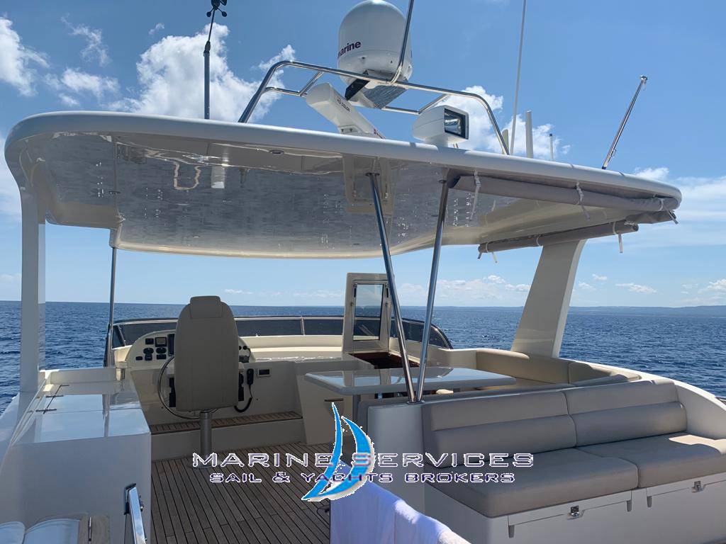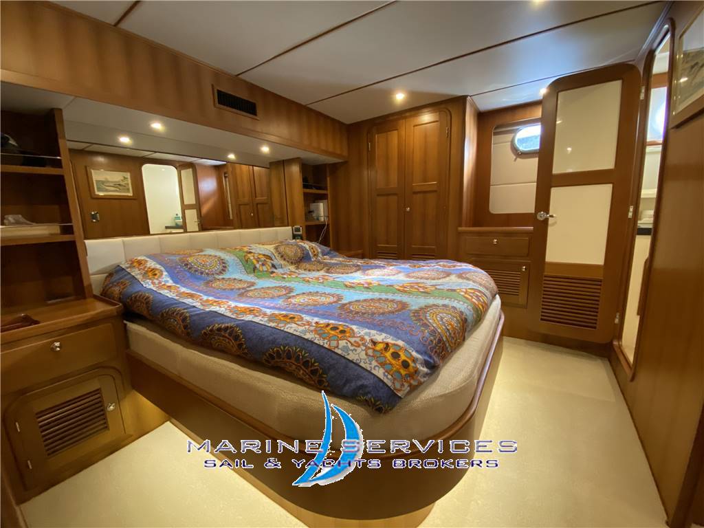 Notas internasFiniture Legno Teak a parete e pavimento , cuscinerie interni in ecopelle bianca. Ponte principale : Salone con tavolo abbassabile per trasformazione in letto , divano a U in ecopelle bianca , mobile contrapposto con Tv a scomparsa e mobile Bar Cucina a vista, attrezzata con : piastre cottura Siemens, Cappa aspirante, Forno combinato Siemens , Lavastoviglie Siemens , Frigorifero con apertura frontale e 2 frigoriferi a cassetto , sistema Schenker Pick&Drink per purificazione acqua potabile. Ponte superiore: Zona timoneria con sedile pilota e divanetto trasformabile in letto aggiuntivo , scaletta di accesso al flybridge e porta di uscita su camminamento laterale . Ponte inferiore : Cabina armatore a centro barca , dotata di due bagni en suite di cui uno con doccia, Secondo Bagno di servizio in disimpegno con alloggiamento Lavasciuga Miele Cabina Master a prua matrimoniale con bagno privato I letti sono dotati di topper per maggiore comfort e funzionalita'. Tutti i bagni sono dotati di Pannelli Radianti e wc elettrici Aria condizionata in tutti i vani Copertura completa dei pavimenti in legno con tappeti in moquette su misura . Notas de la instrumentaciónElettronica completa Raymarine (doppia postazione in plancia interna e Flybridge)Termocamera ad infrarossi Raymarine con sistema navigazione indipendente Gps Touchscreen Radar open ray 48"4kw Autopilota Vhf Eco log AIS Epirb Pannello controllo motori Yanmar Comado remoto per Faro esterno Contametri Catena Bussola Magnetica doppia postazione Telecamera in pozzetto esterno e sala macchine Tv Samsung a scomparsa in Salone Sistema audio Bose Wi- fi Antenna Satellitare Notas de armamentoStabilizzatori Sidepower ( Pinne stabilizzatrici)Elica di Prua e Poppa Sidepower Passerella idraulica Opacmare Generatore Onan 13.5 Kw Pannelli Solari Dissalatore Dessalator 100l/h Aria condizionata reversibile Webasto Dic.2022 Riscaldamento Webasto Lavasciuga Miele Pannelli Radianti elettrici nei bagni Ice maker Freezer + 2 frigoriferi a cassetto in dinette Wet bar su Flybridge attrezzato con Grill Miele , Frigorifero e Lavello 2 Argani di Tonneggio a poppa Ancora Rocna con 100 mt catena 10mm diametro Danfort Ancora di rispetto Serbatoio acque nere 520 Pompa acqua per lavaggio ponte Ampia piattaforma bagno a poppa con scaletta bagno inox maggiorata Luci subacquee Tender con Fuoribordo Mercury 15Hp ( 2020) Presa diretta acqua in banchina Cuscinerie esterne complete con fodere per copertura Telo Privacy per pozzetto a poppa Teli ombreggianti laterali e posteriore su flybridge Corredo di Teli spugna logati per esterni Dotazioni Sicurezza Complete oltre 12 miglia |