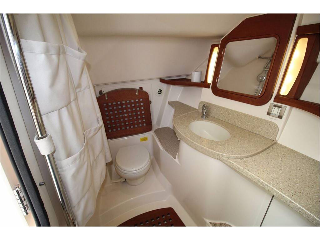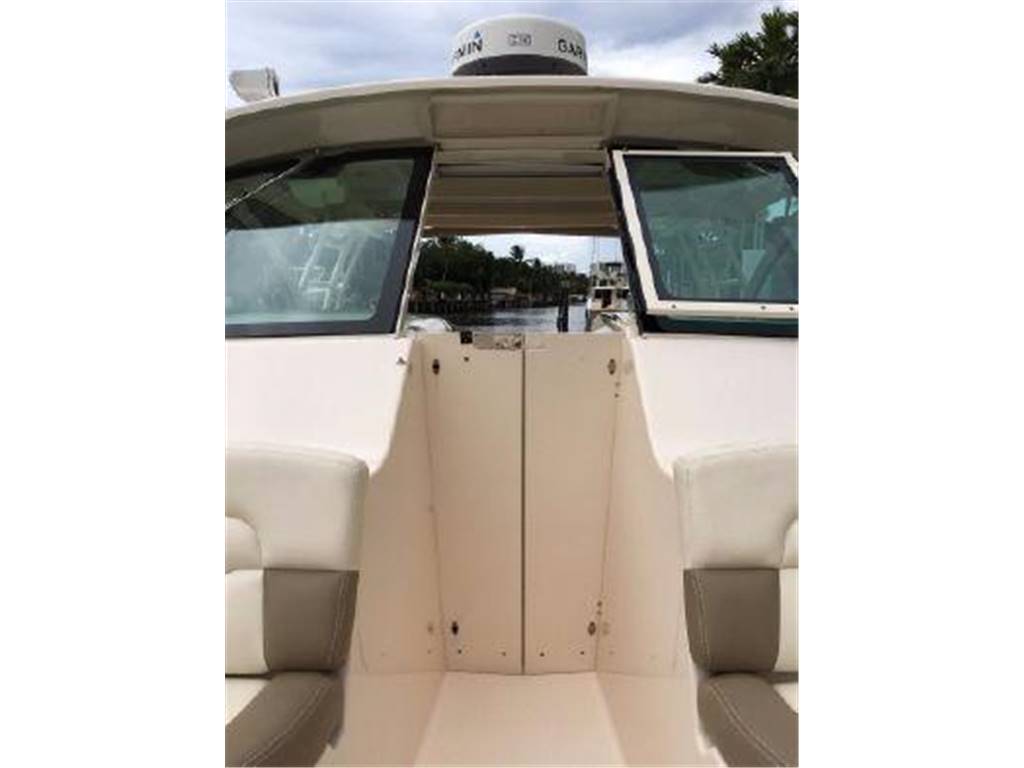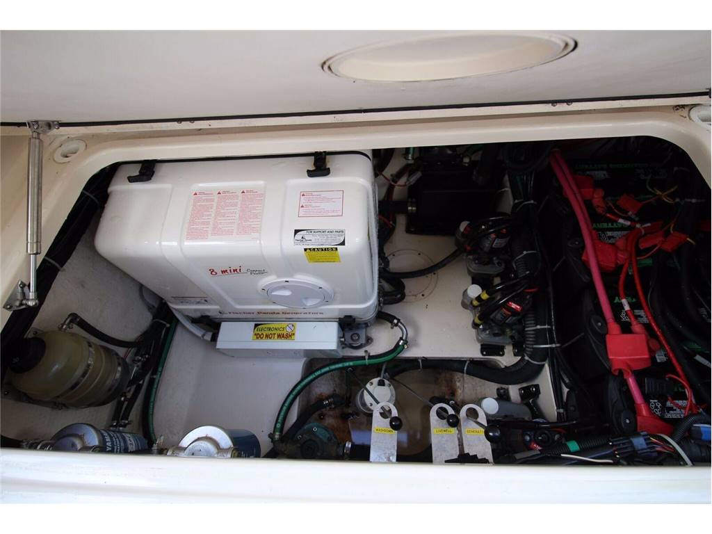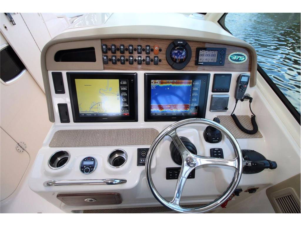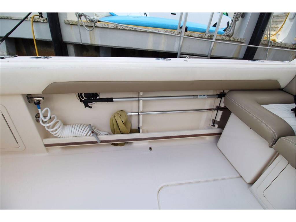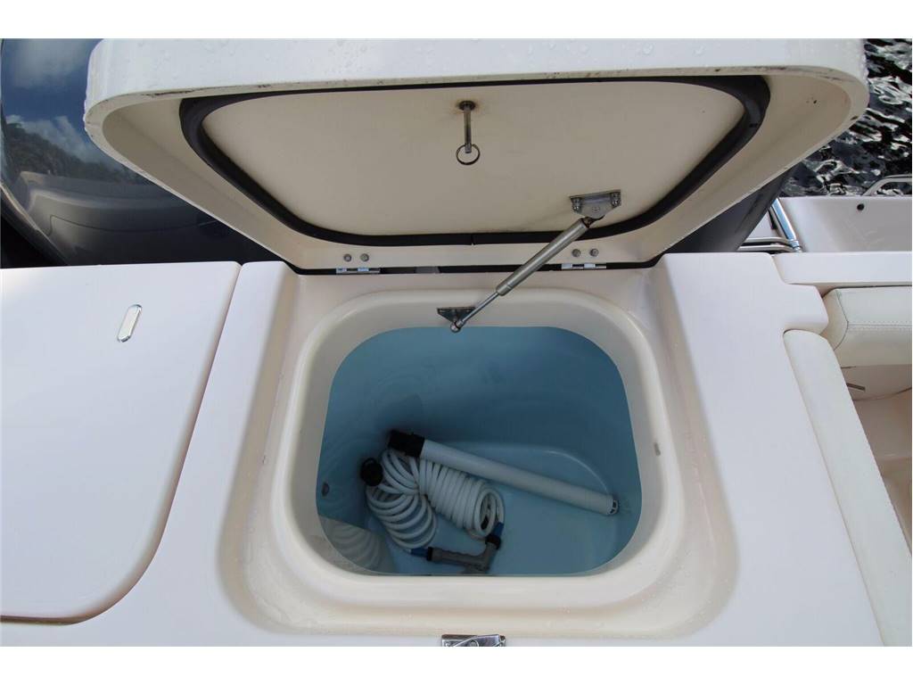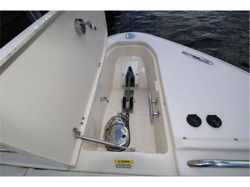 Notas internasNumber of cabins: 2 Number of heads: 1 Interior Features ? Haier Microwave oven ? Isotherm Refrigerator ? Hot water heater ? Vacuflush head, shower, sink ? Cedar lined hanging locker ? Double and single berths ? Reverse cycle A/C ? Convertible settees and tables for multiple functions and configurations Notas de la instrumentaciónNav and A/V Equipment? Warranty until May, 2018 ? Throttle or Joystick control ? Helm Master Control System ? Garmin Chartplotter/Radar/GPS ? Depth Sounder & Speed log ? Garmin Autopilot ? Garmin VHF ? Ritchie Compass ? Sony flat screen TV ? Apple TV ? Sony DVD player ? Fusion Radio and Cockpit speakers Mechanical Equipment ? Triple Yamaha 350's, 4 stroke, V8 ? Fischer Panda generator ? Engines and generator recently fully serviced ? 4 x Batteries ? Battery charger system ? Hydraulic trim tabs w/indicator & retractor Notas de armamentoCockpit / Deck? Lewmar anchor windlass w/remote switches at helm and windlass ? Cockpit freshwater shower (recessed) ? Cockpit LED lights ? Companion grab rail ? Cool box w/chill plates aft ? Live well w/blue LED light ? RGB LED changeable color deck lighting ? Hardtop w/sunroof ? Retractable cockpit awning ? Full zippered cockpit enclosure ? Hydraulic trim tabs w/indicator & retractor ? Storage - forward anchor locker w/rode storage ? Storage - port bow drawer ? Storage - port box under wraparound companion bench seat ? Wet bar w/Kenyon grill, refrigerator, sink, storage drawers, trash bin & fire extinguisher holder ? Windshield - walk-through tempered glass windshield ? Windshield wipers (port & starboard) Safety ? 2 x Automatic bilge pumps ? Basic flotation ? Bow rail ? Cockpit toe rails ? Console grab rails ? Nonskid fiberglass liner ? Self-bailing cockpit w/6 drains ? Stainless steel through-hull fittings |
