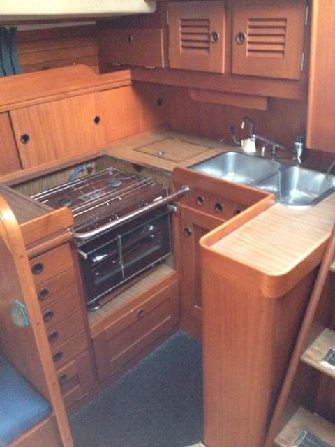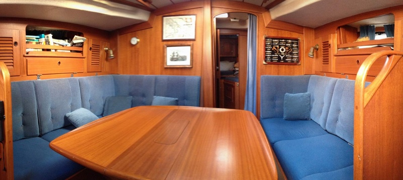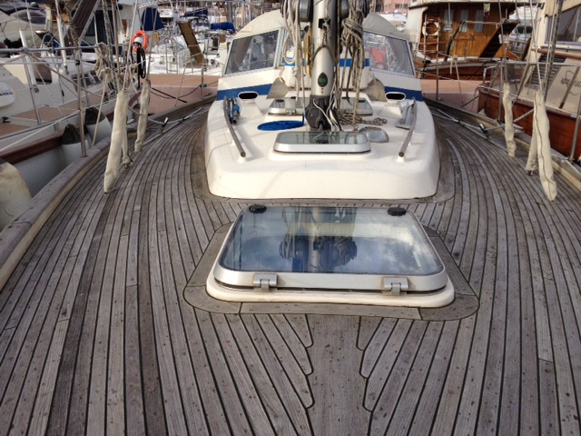 1987, cubierta, cubiertas laterales y cabina de teca maciza, VOLVO PENTA X 60 HP, HALLBERG RASSY, 2 cabinas de WC, ducha ELETTRIC0, Helice de proa, RADAR RAYTHEON APELCO AR16, NAVIONICS GEONAV interna GPS LCD, pabellón, cabina mesa |