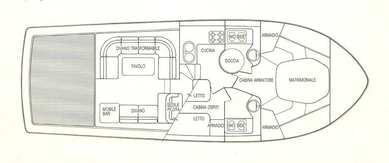 Notas internasNotas de la instrumentación-GPS/plotter Lorenz-piloto automático Nautiradar-depth sounder VDO + Garmin en fly-VHF Shipmate + Icom sobre la marcha.Notas de armamento-Generador Paguro Passerella idraulica-teak Cockpit-Hidráulicas flaps con indicadores -Acero de la puerta a cuatro puertas correderas |