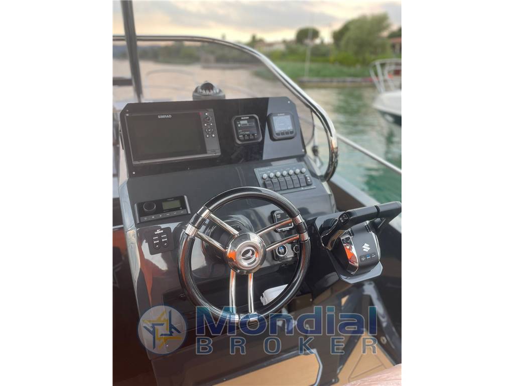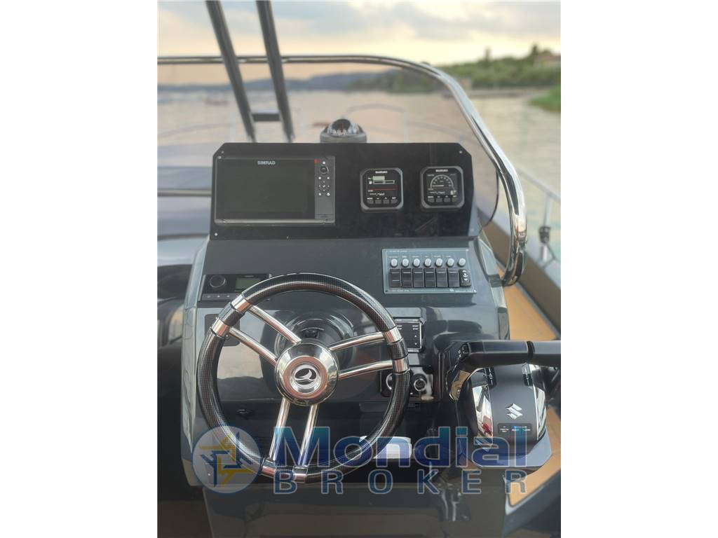 Notas internasNotas de la instrumentaciónDotazioni di serie:Luci di via led, luci cabina prua e poppa, luce bagno, mobile stand-up con wet bar e lavello, doccia esterna, 2 pompa di sentina automatiche prua e poppa, bagno separato con porta, mobile completo con lavello e rubinetto estraibile per doccia, wc chimico, impianto doccia in cabina, mobile cabina in legno con piano antigraffio e contenitori, armadio letto di poppa, tavolo estraibile di poppa completo con bastone estraibile, 4 oblò cabina, pannello utenze con impianto elettrico e quadro elettrico cabina, tientibene e golfari, scaletta inox, timoneria idraulica mono-bi motore (no barra accoppiamento), bussola incasso offshore retroilluminata, serbatoio carbur con galleggiante 277 lt. Optional extra: Doppia batteria con deviante, filtro decantatore, flaps elettrici lenco, impianto stereo, HT inox e VTR, plafoniera pozzetto led, luci led di cortesia pozzetto e gradini, luci subacquee, boiler acqua calda (220V), 2 prese 12v-cabina con usb e console 12v, frigorifero elettrico con incasso, fornello nel mobile stand-up, senza bombola, rivestimento calpestio cabina in sea deck, telo copri console, copri sedile e spalliera poppa, tendalino parasole inox, rollbar inox c7doppia tenda, vericc elettrico con catena e ancora, elica di prua, imp. Caricabatteria 22ov, aria condizionata 12v, wc marino elettrico con impianto acque nere, tromba elettrica incasso Notas de armamentoDotazioni di serie:Luci di via led, luci cabina prua e poppa, luce bagno, mobile stand-up con wet bar e lavello, doccia esterna, 2 pompa di sentina automatiche prua e poppa, bagno separato con porta, mobile completo con lavello e rubinetto estraibile per doccia, wc chimico, impianto doccia in cabina, mobile cabina in legno con piano antigraffio e contenitori, armadio letto di poppa, tavolo estraibile di poppa completo con bastone estraibile, 4 oblò cabina, pannello utenze con impianto elettrico e quadro elettrico cabina, tientibene e golfari, scaletta inox, timoneria idraulica mono-bi motore (no barra accoppiamento), bussola incasso offshore retroilluminata, serbatoio carbur con galleggiante 277 lt. |