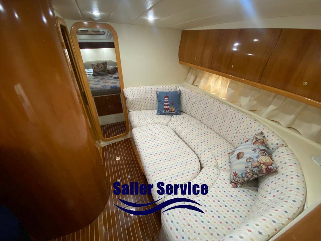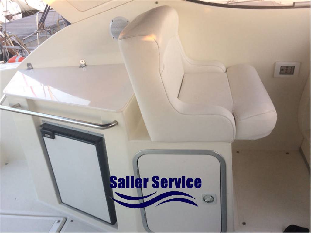Notas internasNotas de la instrumentaciónVHF: Shipmate, Chartplotter: Garmin, Ecoscandaglio: Garmin, Pil aut: SiNotas de armamentoVarie: Cuscineria esterna a prua, plancia poppa in teak, divano a “C” abbattibile, wc elettrico, stereo, tvPompe sentina: Si, Salpa ancora: Elettrico, Boiler: Si Doccia esterna: C e F Tavolo pozzetto: Si, Tendalino: Si, P. acqua di mare: Passerella: Idraulica |