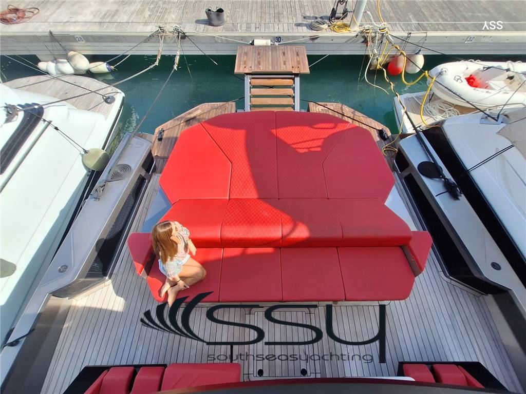 Notas internas- cucina separata con piano cottura in vetroceramica AEG, forno combinato elettrico/microonde, frigorifero Vitrifrigo e lavastoviglie; - toilette quotidiana con box doccia; - Cabina armatoriale matrimoniale con letto centrale queen size con vano portaoggetti, TV Samsung led 32'', impianto hifi Hertz 2.1 e bagno privato molto grande con doppio box doccia; - cabina equipaggio separata con ingresso e servizi propri - Spacious living room with side leather sofa with table, teak flooring, Samsung TV led 32’’, Hertz 2.1 hifi system, WIFI network with router; - separate kitchen with AEG ceramic hob, combi electric/microwave oven, Vitrifrigo fridge & dishwasher; - daily toilette with box shower; - Master double cabin with central queen size bed with underneath storage, Samsung TV led 32’’, Hertz 2.1 hifi system and private very large bathroom with double box shower; - separate crew cabin with its own entance and facilities. Notas de la instrumentaciónVHF/DSC Garmin 115I;2xGarmin 8416XSV 17’’ multifunction display; Autopilot Garmin GHC20; Garmin depth-sounder; Recessed analog compass 4''; 2xBoning LCD engines display; Engine electronicc throttles; Steering control with joystick JDM; Auto Trim system: oleodynamic JDM flaps with manual control; Hydraulic bow thruster Lewmar 250 TTH. Notas de armamento- Sistema domotico personalizzato con display touchscreen e ipad;- Alimentazione a terra 50A Marinco; - Generatore Onan 17,5kw 220v AC, 1500rpm; - Caricabatterie 24v Quick Marine 100A; - Aria condizionata 40.000 BTU Condaria; - Pompa acqua dolce elettronica Whale 24V; - 2 Boiler in acciaio inox 220v 75 lt cad; - Impianto JL-audio (prua 6 altoparlanti +1 subwoofer - poppa 0 altoparlanti +2 subwoofer); - 2xTv led 32'' Samsung all'interno; - sistema audio interno Hertz 2.1; - Rete Wifi con router e connessione 3g/LTE; - Luci di cortesia in coperta Quick Marine; - Frigorifero e congelatore in pozzetto Vitrifrigo; - 2 tavoli Cockipt con sollevatore elettrico; - 5x luci subacquee (3xa poppa + 2 laterali) Lumishore TIX202; - Serbatoio acque nere 100 lt, con pompa maceratore 24V; - Serbatoio acque grigie 100 lt, con pompa di scarico 24V; - Scaletta idraulica Pin Craft; - Garage per tender con 2,80 getti d'acqua. - engine room & cockpit TVCC system; - Custom domotic system with devices display touchscreen and ipad; - Shore Power 50A Marinco; - Generator Onan 27kw 27MDKDU 220v AC, 1500rpm (1900h 12/23); - 2xMastervolt batterychargers (Mass 24/100-C + Mass 24/100-3); - 2xMotormate SP1220-AU DC-DC 20A power booster inverter/converter; - Air conditioning 40.000 BTU Condaria Top Climate; - Whale electronic fresh water pump 24V; - 2 Boilers in stainless steel 220v 75 lt each; - JL-audio system; - bow 6 speakers +1 subwoofer- stern 10 speakers + 2 subwoofer; - 2xinside Tv led 32’’ Samsung; - inside Hertz audio system 2.1; - Wifi network with router and 3g/LTE connection; - Deck courtesy lights Quick Marine; - Cockpit Fridge & freezer Vitrifrigo; - 1xwinecooler Isotherm; - 1xVitrifrigo cockpit drawer fridge; - 2 Cockipt tables with electric lifter; |