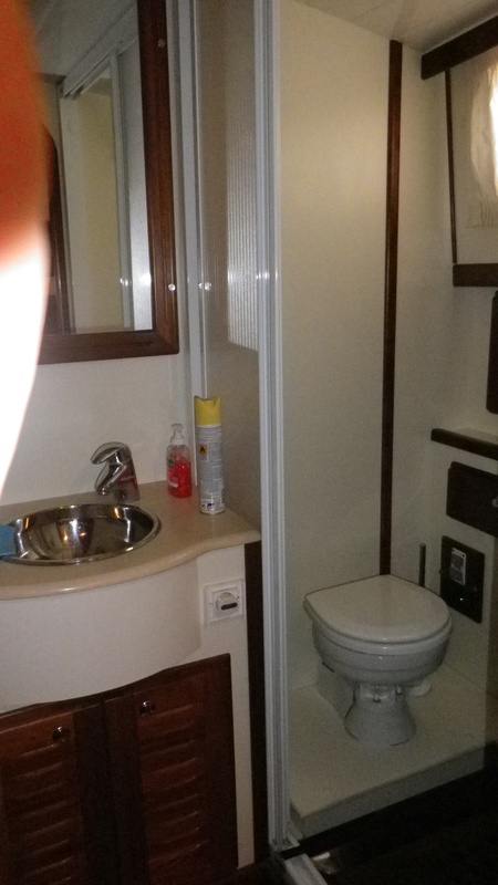 Notas internasNotas de la instrumentaciónCartográfica GPS, radar, piloto automático, RADIO VHF, sonar de profundidadNotas de armamentoBOWTHRUSTER, casco azul, de la cadena, todavÃa una cadena de acero inoxidable de 30 kg, baterÃa nueva, 3 2011 pasarela Gandola, teca en extensión de cabina doble nevera, congelador, TV con reproductor de DVD y decodificador, WC eléctrico, cojines de proa, cabina y invierno, verano y generador, aire acondicionado |