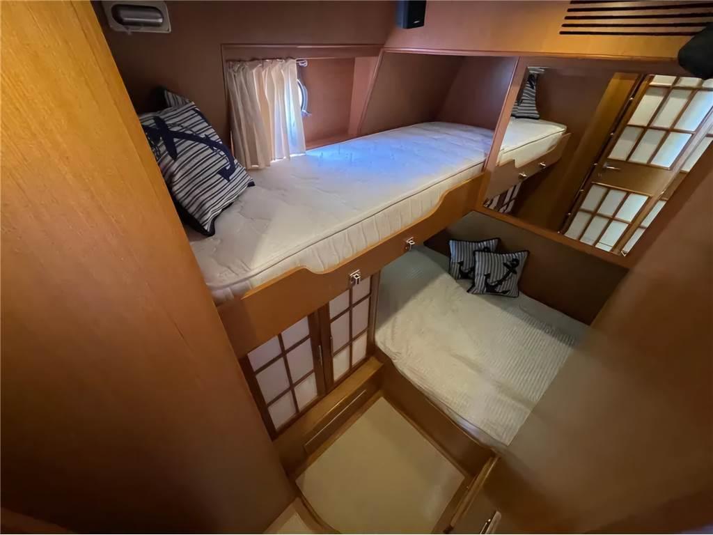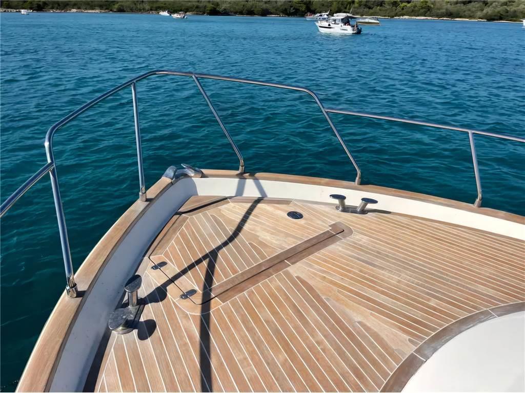 Notas internasNotas de la instrumentaciónBussola, Pilota automatico, Plotter con antenna GPS, Radar, Radio VHF, Yacht controller.Notas de armamentoAllestimento tecnico e di coperta:Ancora, Doccia esterna, Elica di poppa - stern thruster, Elica di prua - bow thruster, Garage per tender, Passerella (telescopica a scomparsa), Piattaforma (in teak con scala bagno a scomparsa), Pompa di sentina automatica, Pompa di sentina elettrica, Porta ingresso, Pozzetto Teak, Presa 220V banchina, Presa acqua banchina, Salpa Ancore Elettrico, Scaletta da bagno, Tavolo pozzetto, Tender, Tromba, Winch. Dotazioni domestiche di bordo: Aria condizionata, Prese interne 12v, Prese interne 220v, Riscaldamento, WC marino elettrico. Dotazioni di sicurezza: Barometro, 2 Zattera di salvataggio (per 10 persone 6+4). Intrattenimento: Impianto TV, TV (LCD 20"). Cucina ed elettrodomestici: Congelatore (67 lt), Frigorifero esterno, Frigorifero interno (218 lt), Microonde (con grill), Piastra in vetroceramica. Tappezzerie: Cuscineria completa. |