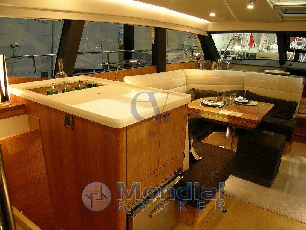 Notas internasLayout standard 4 cabine e 3 bagni. Ampio salone con divano a murata e tavolo; sistema TV , impianto audio e casse - Cucina equipaggiata con 3 fornelli a gas, forno, lavandino, frigorifero e Freezer - Cabina armatore a prua con letto matrimoniale, bagno con doccia e WC elettrico. Cabina ospiti con letto matrimoniale. Cabina Vip con letto matrimoniale.? 4° cabina oppure cabina marinaio ( 2 letti ) con bagno e doccia. Wc elettrici in ogni bagno. Notas de la instrumentaciónElettronica Raymarine: 4 ripetitori multifunzioni I70 entrambe le timonerie con trasduttore vento in testa d’albero - Vhf Ray260 al carteggio con 2a cornetta in pozzetto - Vhf aggiuntiva indipendente con antenna in testa d’albero dedicata ais transceiver 650 - 2x Plotter/Gps Raymarine E125 entrambe le consolle delle timonerie esterna - Autopilota Rymarine - Ripetitore AIS classe B - Interfaccia NMEA per dati motore ai plotter - Radar Ray RD418HD - Plotter/Gps E90 al carteggio - Display Ray Autopilota al carteggio - Controlli joystick eliche di prua e di poppa su entrambe le consolle in pozzetto - comandi motore su etrambe le consolle in pozzetto e in carteggio.Notas de armamentoEquipaggiamento interno/esterno:Ancora con Catena 100m - Ancora di rispetto - Dissalatore 100 l/h - Riscaldamento - Aria condizionata - Impianto stereo - Tv schermo piatto a scomparsa Tv schermo piatto in armatoriale - Lavastoviglie - Lavaasciuga Miele - Cuscineria esterna completa e prendisole a prua - Tavolo pozzetto abbattibile - Sedute poppa rialzabili - Bimini - Chiusura invernale pozzetto - Coperture vetrate - Doccia esterna + doccetta prua - Tendalino copri prendisoli a prua - Passerella elettroidraulica - Garage di poppa - Tender + motore fb elettrico - Plancetta abbattibile - Batterie : 1x mot.90ah12v+8x160ah12v serv+2x100ah24v bowtrust+2x100ah24vsterntrust+1 dedicata generatore - Luce in testa d'albero tricolore led - Radio Aantenna filare sul paterazzo accordatore automatico d’antenna,modem pactor 4 interfacciato alla lan di bordo - Generatore FISHER PANDA 6kW - Caricabatterie 2 x Victron 120 - Inverter 2500W -Voltaggi 12/24/220 - elica 4 pale abbattibile con tagliacime . Vele: Modello sloop con fiocco autovirante. Vele Elvstrom FCL N°2 winch elettrici 2 velocità. Rullafiocco per fiocco autovirante elettrico + Rullagenoa elettrico + Rullaranda elettrico - Vele Randa stecche verticali avv. - Genova - Fiocco autovirante steccato - Jennaker con calza 240mq. - Code 0 Laminato Kevlar 150 Mq |