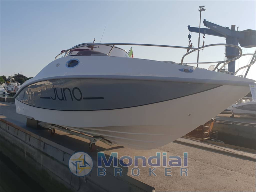 Notas internasCaratteristiche Generali Cantiere e modello: Orizzonti Juno 590 Lunghezza: 5,90 mt Larghezza: 2,50 mt Anno: 2021 Motore: Mercury F115 (115 CV) benzina Portata: 6 persone Cabinato walkaround con ampio prendisole di prua e cabina letto per due persone. Vano bagno separato con WC chimico Cauzione: 1.600,00€