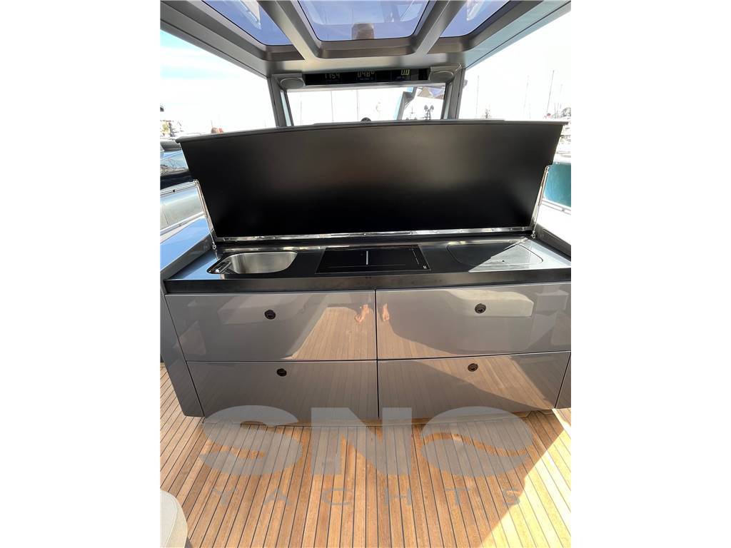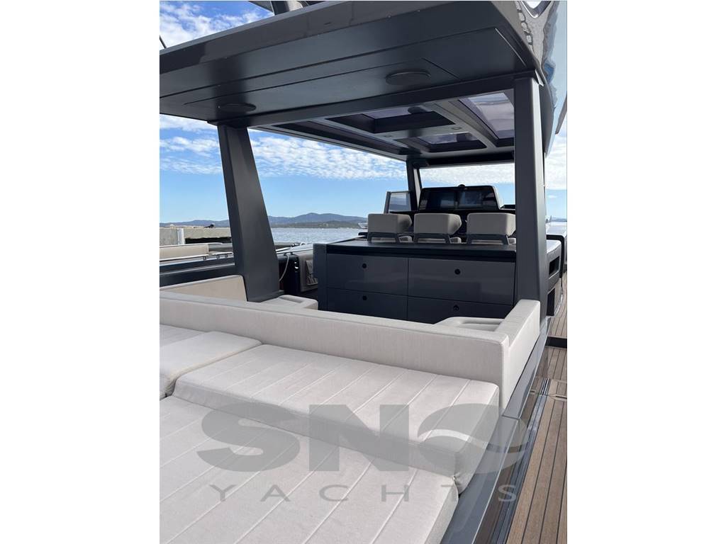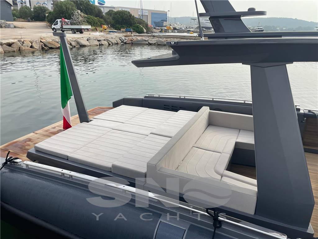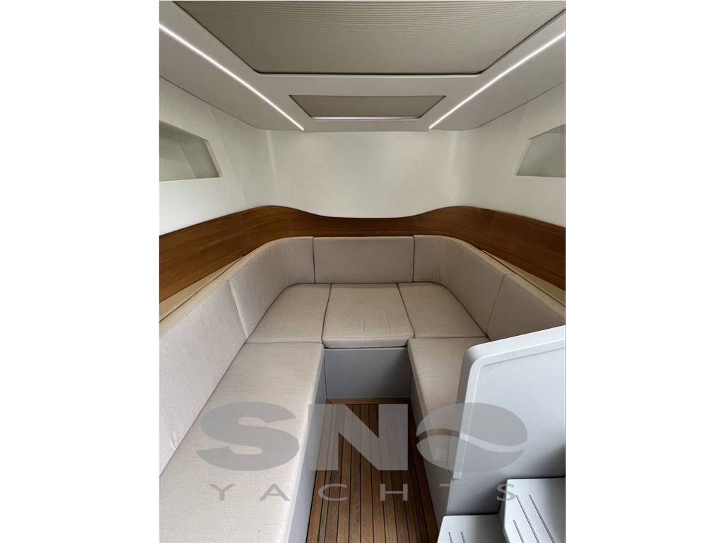 The BS 140 is the first model in the EGO line, available in outboard and In-outboard versions. With an aggressive design, it stands out for its extreme attention to detail and the use of selected materials, offering large spaces for leisure and relaxation. The walk-around layout maximizes the use of deck spaces, making it perfect for daytime activities. The stern hosts a large sundeck, seamlessly connected to a dinette serving as a lounge, connected with the sea and sky thanks to the water view and the transparent roof. Side accesses and a large stern platform with a swim ladder facilitate entry into the water.