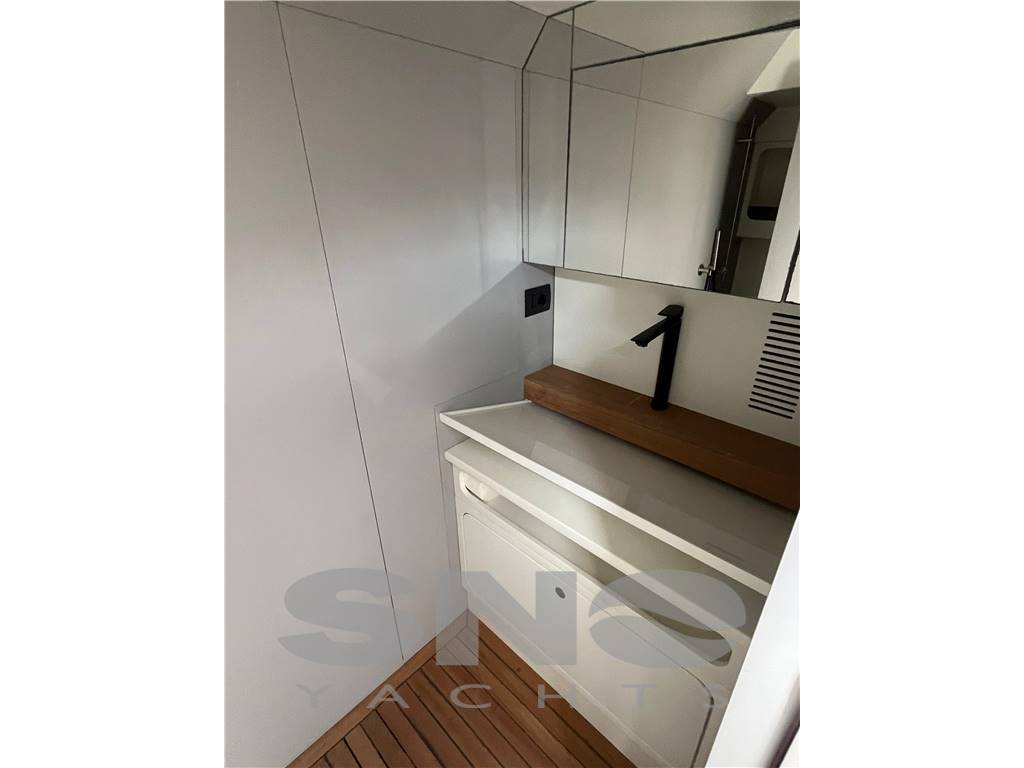 The bow can be transformed into a dinette, sundeck, or dining area with a multifunctional table. Bow and stern awnings cover the entire deck surface. The use of space allows for a cabin with a spacious interior, including a dinette that converts into a double bed and a spacious bathroom. The control area, equipped with numerous navigation instruments, makes the BS 140 suitable for less experienced users for coastal and long-distance navigation