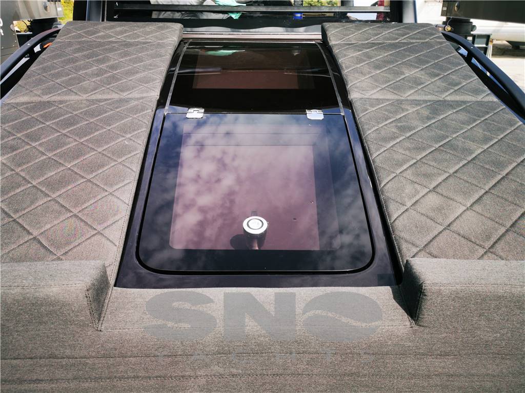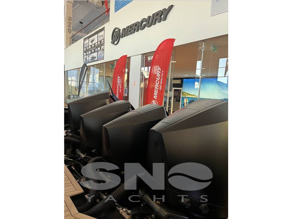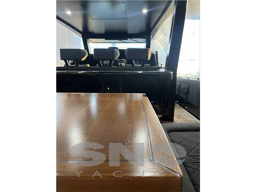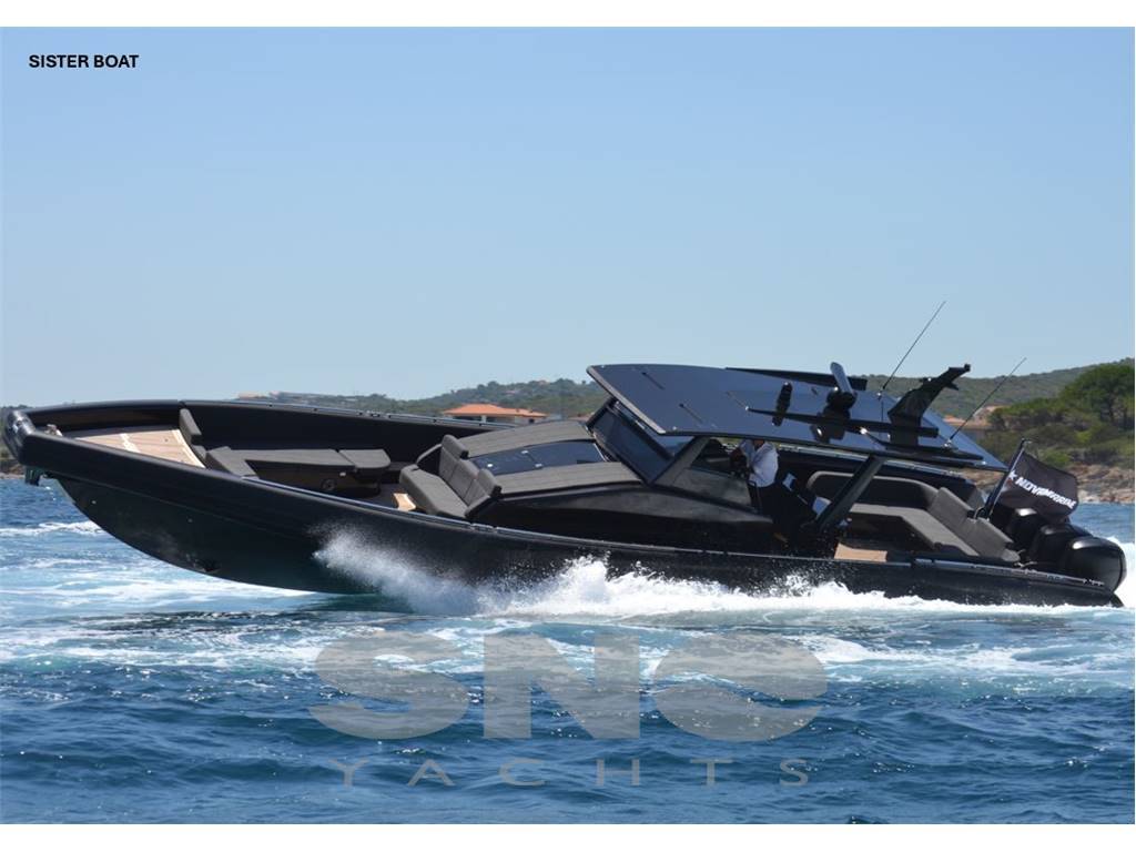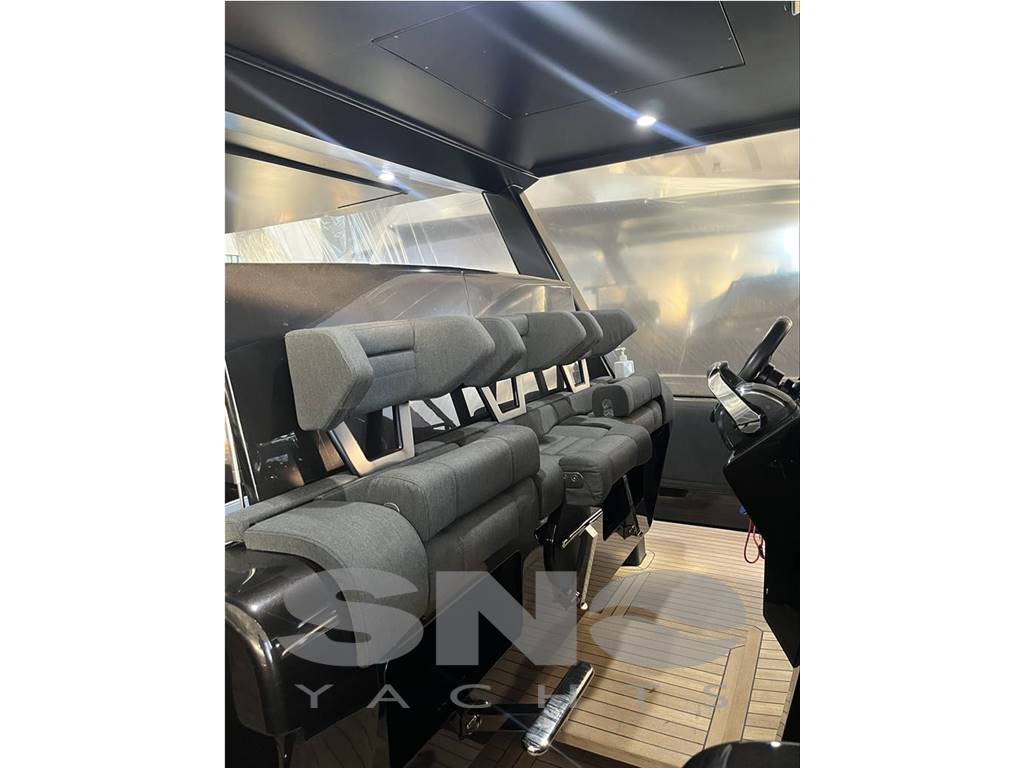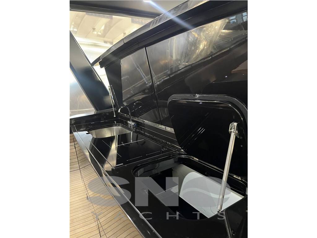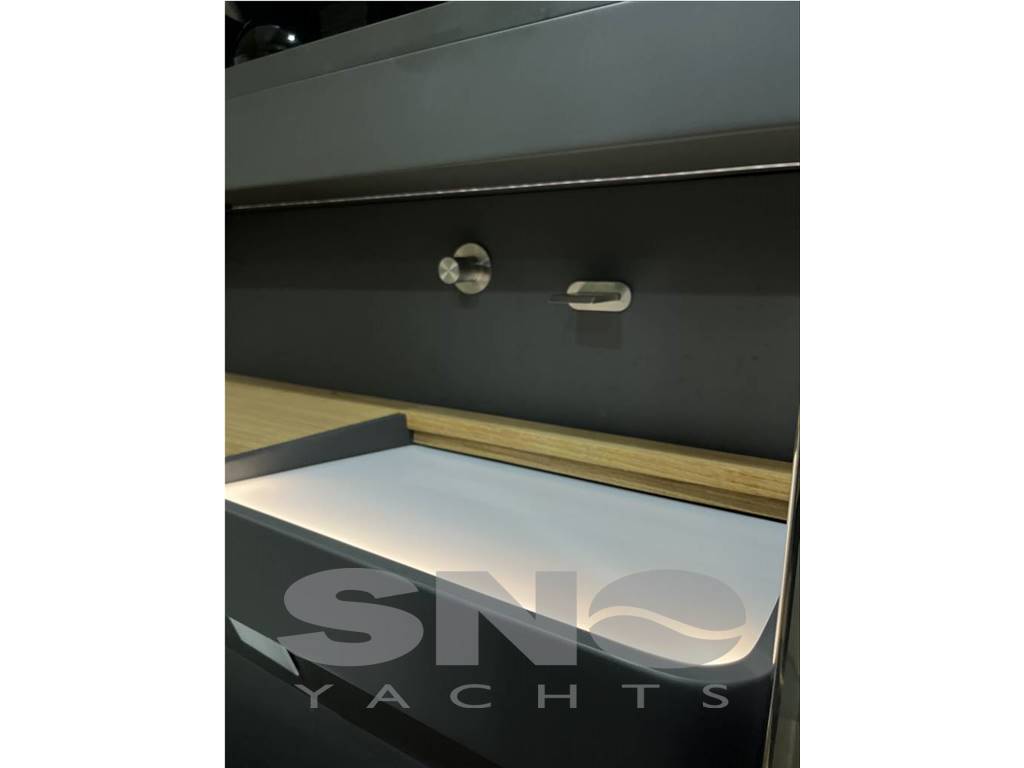 The deck offers a dinette area under a spacious roof and a cabinet with a fridge, sink, kitchen, and storage. The bow can be converted into a large sofa, sundeck, or dining area, covered by a sunshade for unmatched comfort. Below the deck, a dinette that converts into a bed and a bathroom with a separate shower offers a bright and ventilated environment, equipped with air conditioning. The deck design, close to the waterline, facilitates contact with the sea through side doors and stern accesses. The BS 160, with its dominant accessorised steering console, combines reliability, style and easy handling in all conditions.