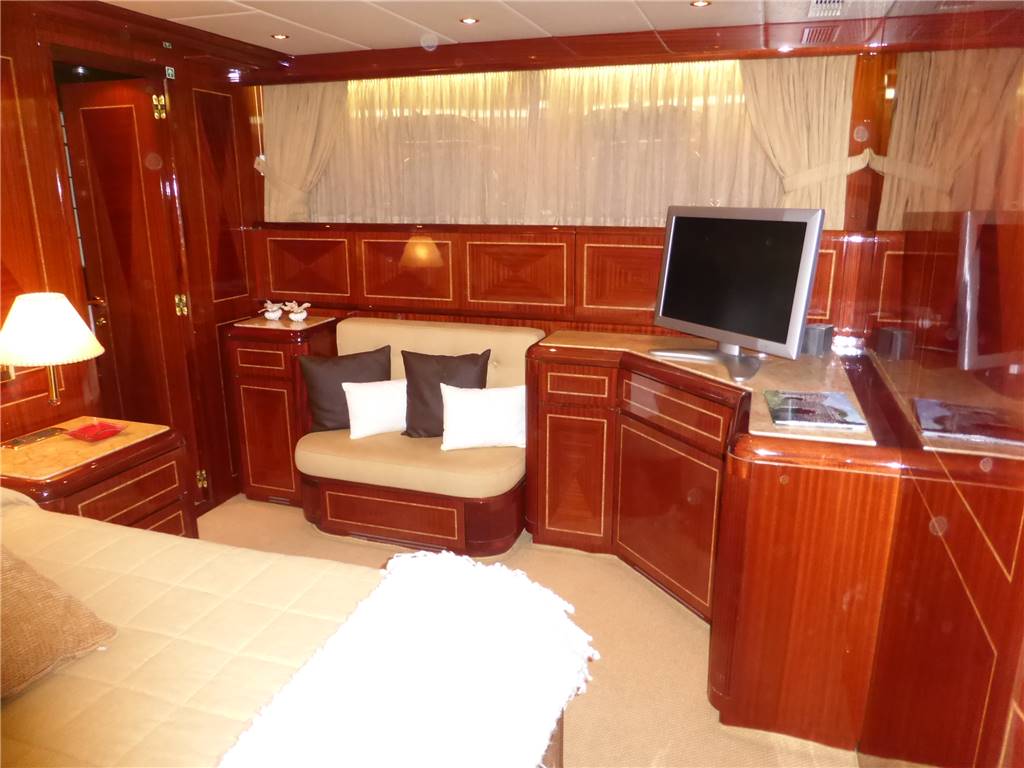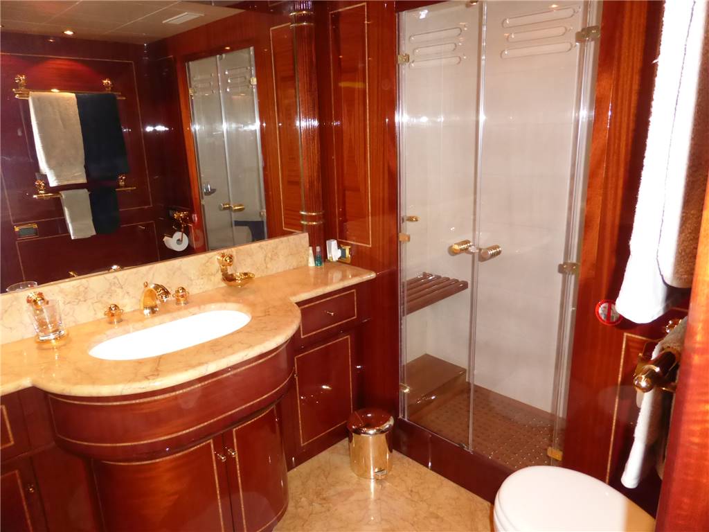 Notas internasNotas de la instrumentaciónAutopilot: Robertson Simrad AP9MK3,Compass: KVH,Depth Sounder: Simrad,GPS/Plotter: Simrad CE44,Furuno GPS,Radar: Furuno,Radio: VHF (Skanti),Wind Gauge: Simrad,Dishwasher: Zanussi LS3,Fridges: 6 in Galley (Frigit),1 in Main Salon,(Frigit)Icemaker: In main Salon,Microwave: Miele M615EG,Stove: Miele,Oven: Miele,Washing Machine: 2x Miele Novotronic WT945,Sound & Video Main Deck Salon: TV LCD,Pioneer DVD 5.1 CH Surround System,Satellite Decoder (Aston),Master Cabin: TV LCD (Sharp),DVD (Phillips),Satellite Decoder (Aston),VIP Cabin: TV (Sharp LC20VMZ),DVD (Sony) Satellite Decoder (Aston),Port GuestCabin:TV DVD,Starboard Guest Cabin: TV-DVD,Crew Area & Galley: Car Stereo (Panasonic),DVD (Sony) VHS (Sony),Decoder (Nokia Media master 9800S)Notas de armamentoAria condizionata Elica di manovra di prua idraulica Allarme motore Allarme sentina Doppia Ancora Autoclave Autogonfiabile Caricabatterie Cuscineria completa Doccia esterna Flap idraulici Impianto antincendio Lavaggio catena Passerella idraulica Piattaforma Pompa di sentina automatica Pozzetto Teak Raddrizzatore Scaletta bagno Winches Winches tonneggio di prua |