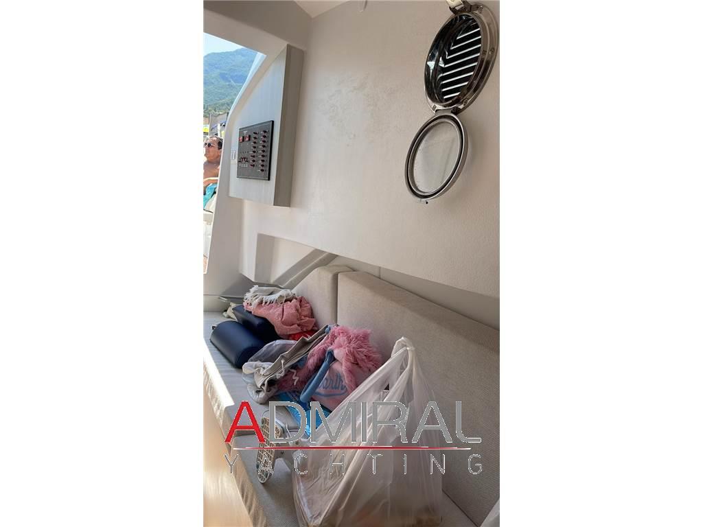 Notas internasNotas de la instrumentaciónAngolo barra, Bussola, Display (MOTORI SUZUKI), Ecoscandaglio, GPS, Pilota automatico, Plotter con antenna GPSNotas de armamentoAllarme motore, Allarme sentina, Ancora, Autoclave, Batterie, Camminamenti laterali in teak, Caricabatterie, Doccia esterna, Elica di prua - bow thruster, Luci di cortesia (LED), Pompa di sentina automatica, Pompa di sentina elettrica, Pompa di sentina manuale, Pozzetto Teak, Presa 220V banchina, Salpa Ancore Elettrico, Scaletta da bagno, Sedile Copilota, Tavolo (ELETTRICO), Tromba, Altoparlanti, Boiler, Cuscineria completa, Cuscineria di poppa, Cuscineria di prua, Fornello, Frigorifero esterno, Prese interne 12v, Prese interne 220v, Radio AM/FM, Stereo, Tendalino, WC marino elettrico |