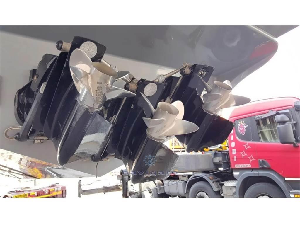 Notas internasNotas de la instrumentaciónAllarme motore, Allarme sentina, Ancora, Angolo barra, Apertura Vano Motore Elettrica, Autoclave, Batterie, Bussola, Caricabatterie, Comando motori elettronico, Contametri catena, Doccia esterna, Ecoscandaglio, Elica di prua - bow thruster, Flap idraulici, Garage per tender, GPS, Indicatori Flaps, Luci di cortesia, Luci di navigazione, Luci subacquee, Piattaforma, Pilota automatico, Pompa di sentina automatica, Pompa di sentina elettrica, Pozzetto Teak, Presa 220V banchina, Radio VHF, Salpa Ancore Elettrico, Scaletta da bagno, Tavolo pozzetto, Tender, TrombaNotas de armamentoAria condizionata, Boiler, Cucina, Cuscineria completa, Frigorifero esterno, Frigorifero interno, Impianto TV, Pavimento interno in legno, Prese interne 12v, Prese interne 220v, Telo copriconsolle, Tendalino, WC marino elettrico |