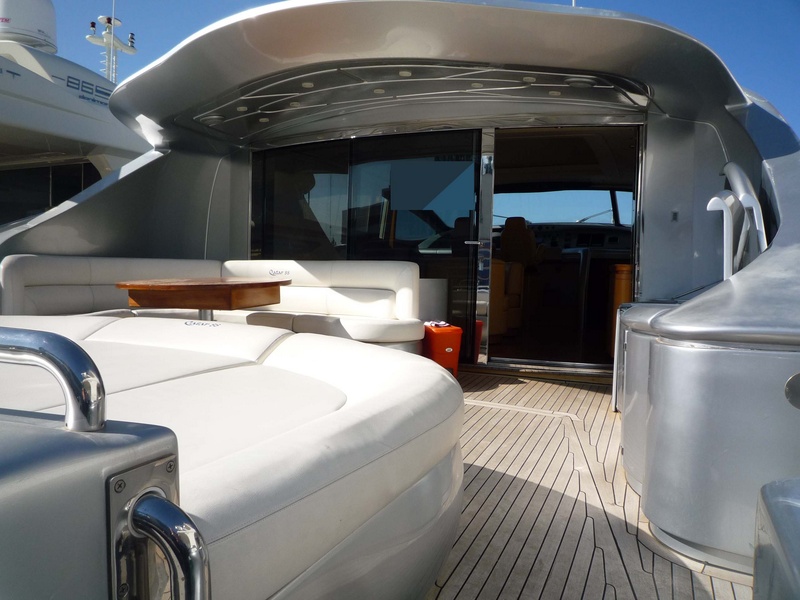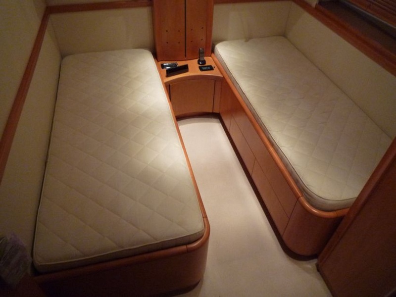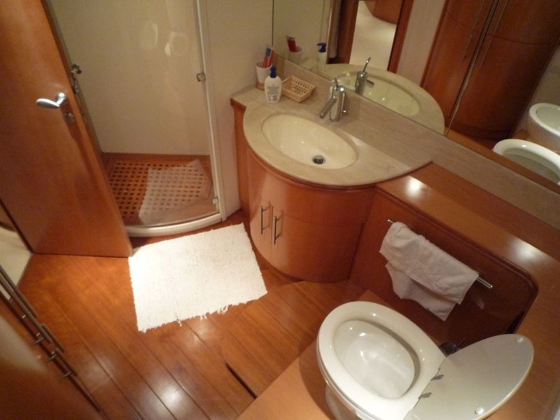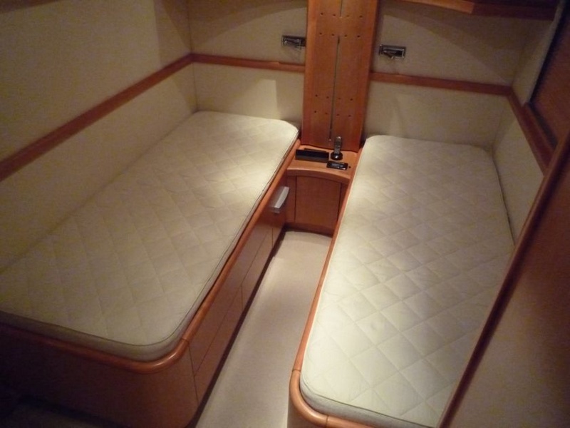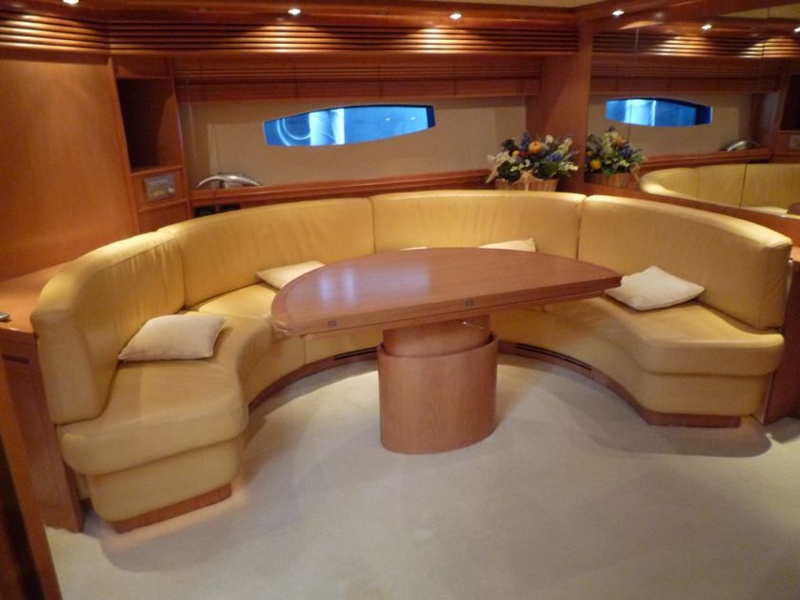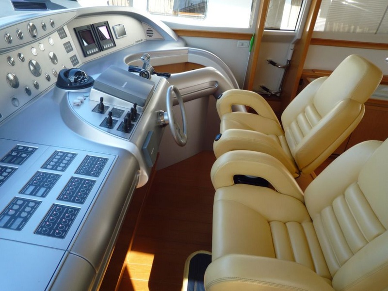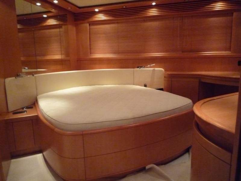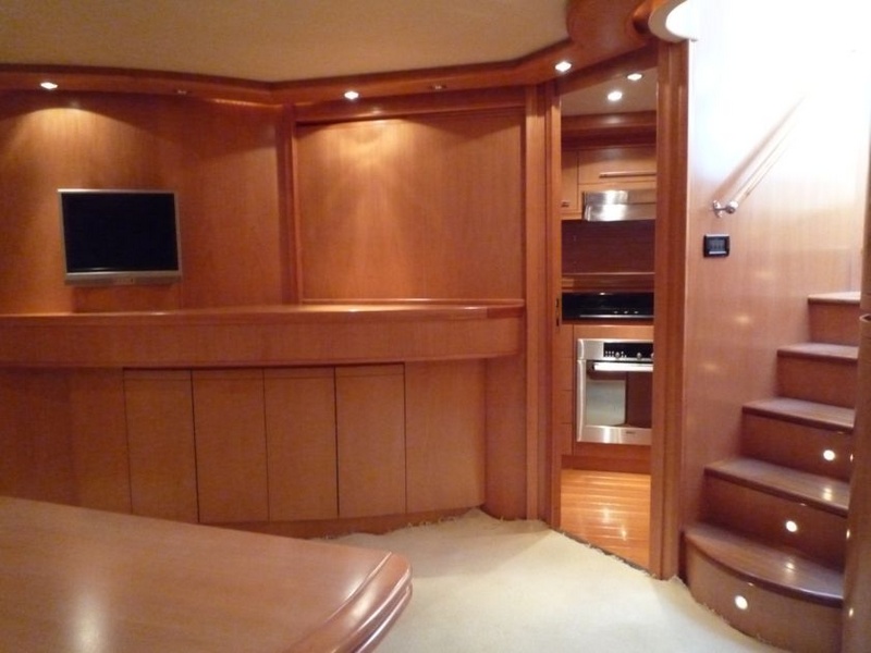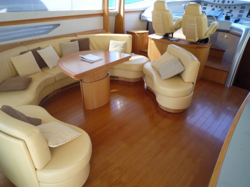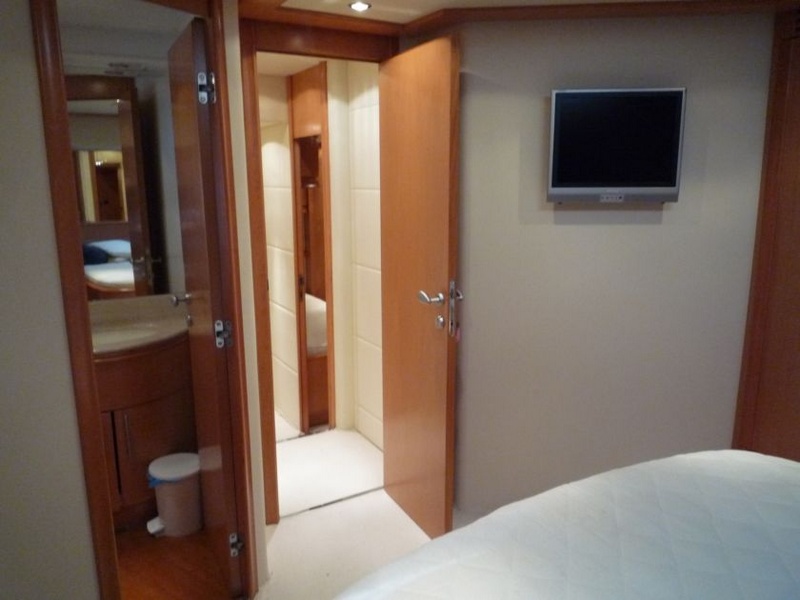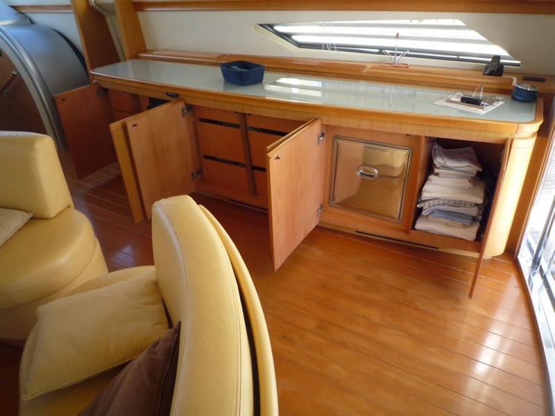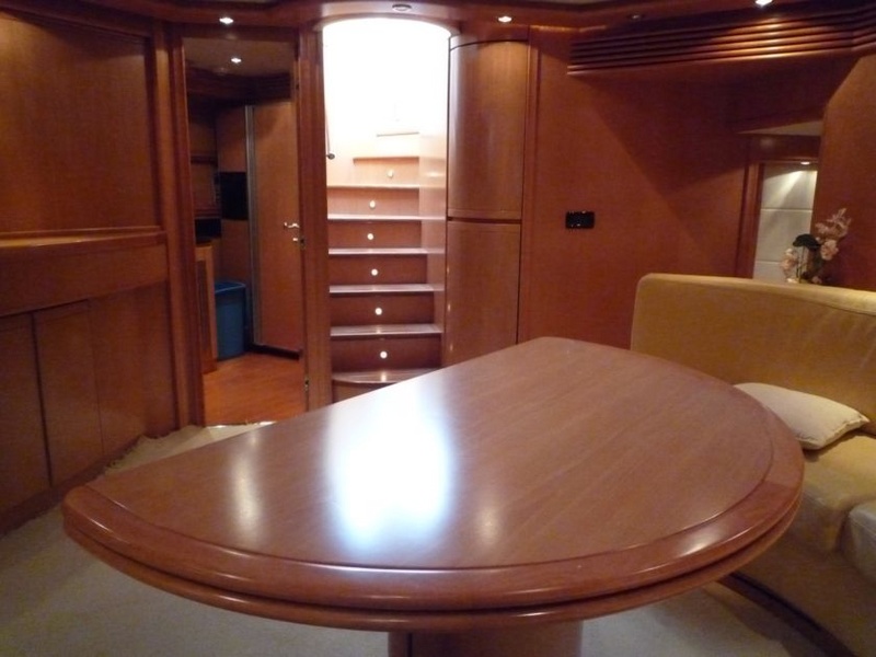 Notas internasClásico interior muy bien cuidado con madera en perfectas condiciones - Mobiliario y pulido moibili madera cerezo y caoba, pisos de alfombrado y sofás de cuero crema y color crema del suelo de rejilla - El salón de la cubierta superior brillante con sofá + 2 sillones C y sdoppiabile mesa y móvil cómodo contrasta con 42 plasma Tv, otro móvil con máquina de hielos - Sistema de dirección con asiento piloto y copiloto en cuero color crema y doble puerta en la cara cuando - Escala de lowerdeck que conduce a un salón amplio y luminoso con una gran mesa de caoba sdoppiabile x 10 las personas y el sofá en forma de C, tapizado en terciopelo color ocre - frente a una pared baja móvil con televisores de lcd y gran cocina sapara de salón con suelo de teca - cocina completa con alacenas y encimera en quemadores de cerámica de cristal negros.4, fregadero, Nevera americana grande de 250 lt con dispensador de bebidas exterior, horno microondas, lavavajillas - en la parte posterior son el cómodo baño con ducha y mostrar 2 escalera que conduce a la grande y espaciosa master Suite en el centro del barco con una cama doble de madera con paneles del gabinete con escritorio y con 42 ' Lcd Tv con sistema vÃa satélite, teléfono, cómodo vestidor con walk-in closet, baño amplio y luminoso con wc y cd-dvd , bidé, lavabo con ducha separada y estante + armario con estantes - Dos huéspedes cabañas con camas planas, 24 ' lcd Tv con sistema vÃa satélite, cd-dvd y teléfono y baño privado con inodoro, lavabo y ducha estantes - Una pua de cabina Vip con cama matrimonial, pedestales, isla gabinete, 24 ' lcd Tv con pared de sistema de satélite, cd-dvd y teléfono y baño privado con wc, Bidé, lavabo y estantes y ducha separada - Gran comedor en el piso inferior, espaciosa bañera con piso de teca equipado con sofá en forma de C y mesa de teca para 8 personas y gran solarium - Móvil con fregadero, nevera, barbacoa y acceso para el alojamiento de la tripulación con 2 camarotes con literas y baño con ducha + lavanderÃa con secadora y acceso a la sala de máquinas.