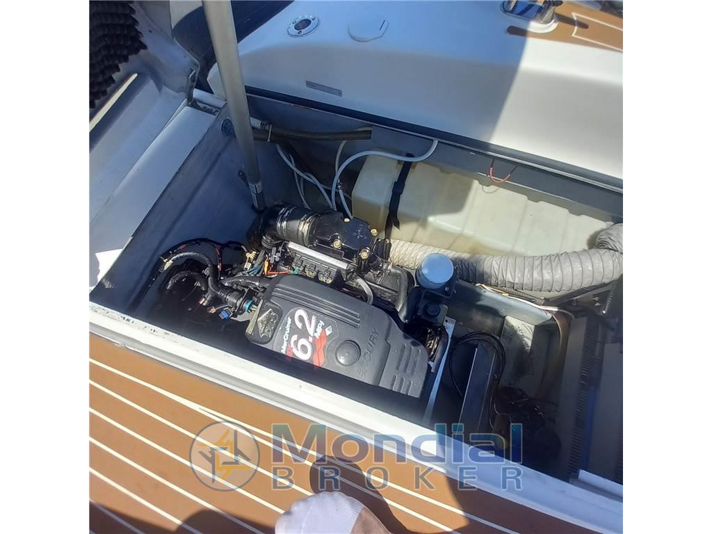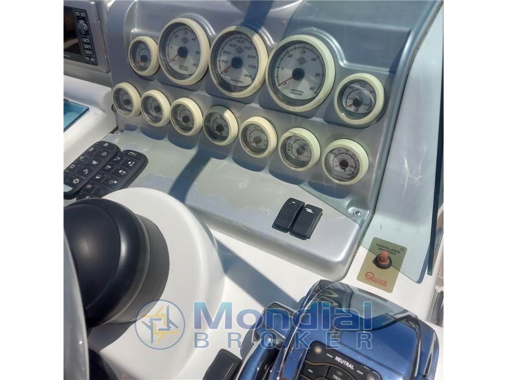 Notas internasNotas de la instrumentaciónBussola, Computer di bordo, Contametri catena, Contamiglia, Display, Ecoscandaglio, GPS, Pilota automatico, Radio VHF.Notas de armamentoAllestimento tecnico e di coperta:Allarme motore, Allarme sentina, Apertura Vano Motore Elettrica, Doccia esterna, Impianto antincendio, Luci di cortesia, Luci subacquee, Piattaforma, Pompa di sentina automatica, Pompa di sentina manuale, Pozzetto Teak, Presa 220V banchina, Rollbar, Salpa Ancore Elettrico, Scaletta da bagno, Tavolo, Tromba. Dotazioni domestiche di bordo: WC chimico. Intrattenimento: Altoparlanti, Radio AM/FM, Stereo. Cucina ed elettrodomestici: Fornello, Frigorifero esterno. Tappezzerie: Cuscineria completa, Cuscineria di poppa, Cuscineria di prua, Telo copriconsolle. |