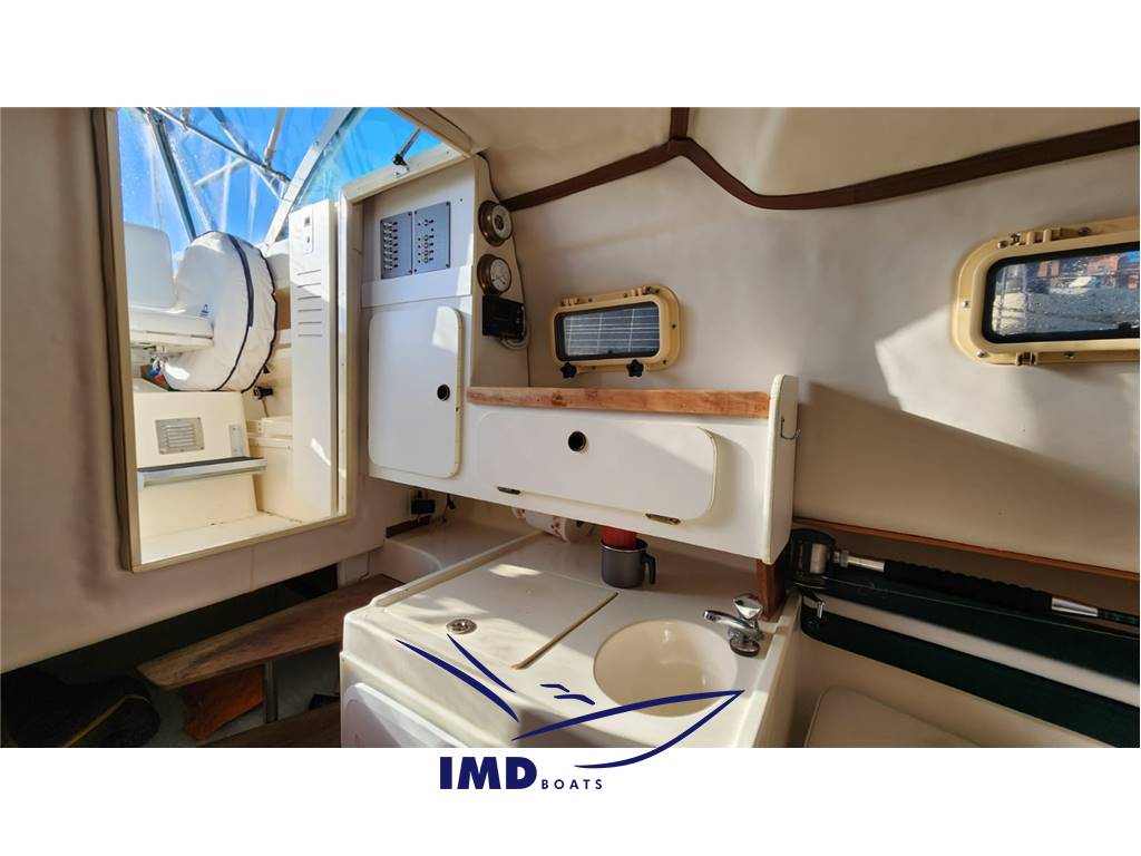 Notas internasLetto da una piazza e mezza nella zona di poppa Wc elettrico marino in locale separato con porta (maceratore nuovo 2023) Notas de la instrumentaciónPlotter Garmin 723 7" eco gpsTrasduttore poppiero GT 20 Garmin Vhf 100i Ghiaccia lato passeggero refrigerata con evaporatore Verricello elettrico con ancora e catena Pannello solare su rollbar tendalino di poppa Cuscineria nuova su vasche di poppa vasca dl vivo e del pescato |