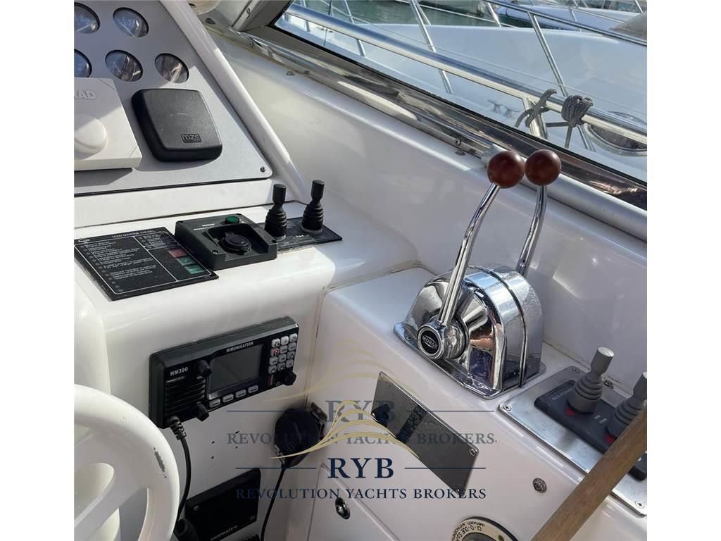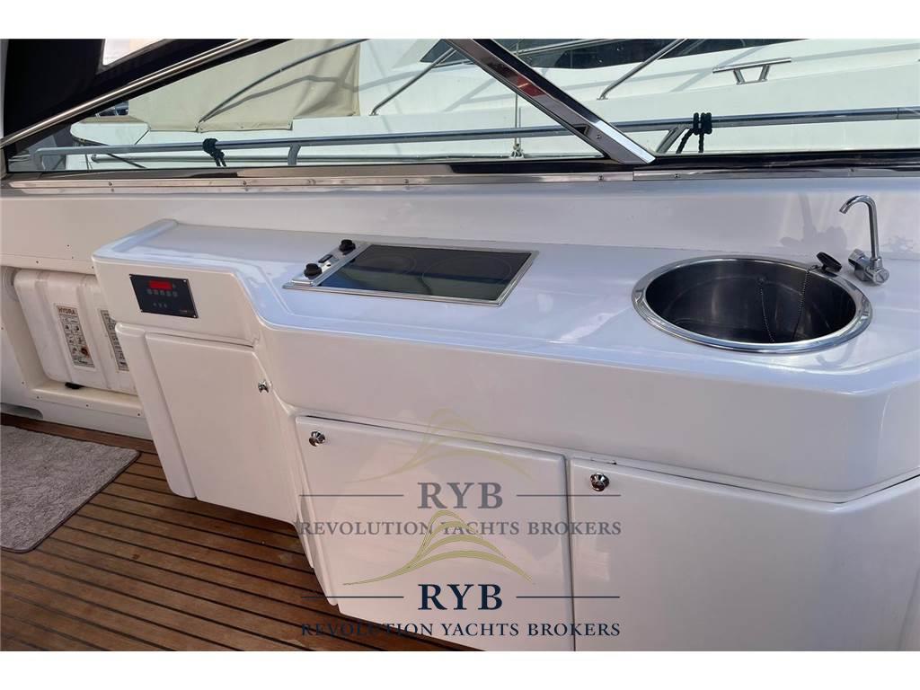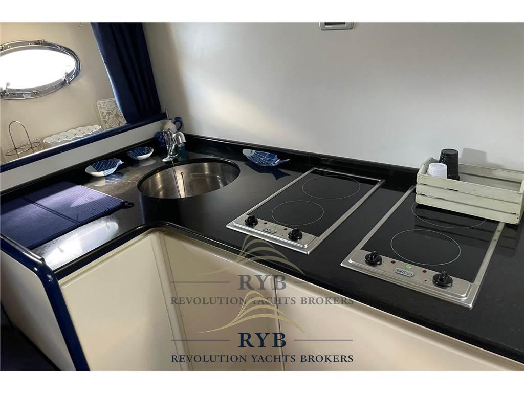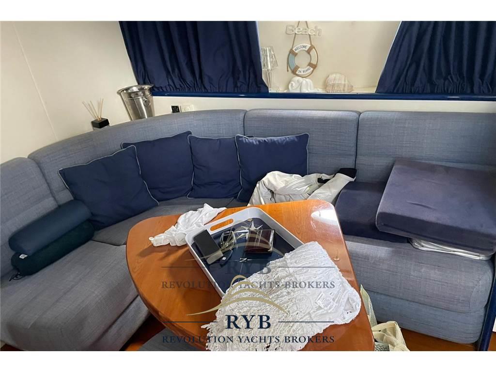 Notas internasNotas de la instrumentaciónBussola, Comando motori elettronico, Contametri catena, Contamiglia, GPS (SIMRAD 12 POLLICI), Pilota automatico, Radio VHF.Notas de armamentoAllestimento tecnico e di coperta:Ancora, Elica di poppa - stern thruster, Elica di prua - bow thruster, Impianto antincendio, Lavandino nel Pozzetto, Luci di cortesia (LED TUTTI AMBIENTI), Passerella, Piattaforma, Pompa di sentina elettrica (NUOVE), Pozzetto Teak, Presa 220V banchina, Rollbar, Salpa Ancore Elettrico, Tavolo pozzetto, Tender (con mercruiser 20cv). Dotazioni domestiche di bordo: Aria condizionata (TUTTI GLI AMBIENTI), Pavimento interno in legno, Prese interne 12v, Prese interne 220v, WC marino elettrico. Intrattenimento: DVD, Impianto TV, Stereo (INTERNO/ESTERNO), TV. Cucina ed elettrodomestici: Cucina (INTERNA/ESTERNA), Frigorifero esterno, Frigorifero interno, ICE Maker, Piastra elettrica. Tappezzerie: Bimini, Cuscineria di poppa, Cuscineria di prua, Tendalino (INVERNALE/ESTIVO NUOVI). |