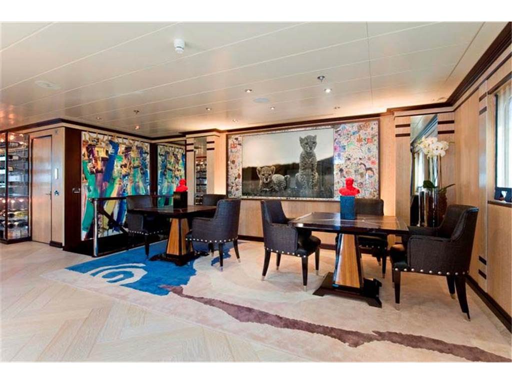 Notas internasA true explorer yacht with the volumes of a much bigger vessel and the class of a palace, FORCE BLUE not only boasts amazing deck spaces and entertainment areas, but she also offers stunning spa facilities, perfect for a great party and the morning after. An extremely well-equipped yacht, FORCE BLUE is the ultimate entertaining tool, offering something for everyone and exceptional amenities. With accommodation for 12 guests, she is well suited to groups or corporate charter guests and promises much enjoyment. Notas de la instrumentaciónNotas de armamentoSpecial features include a Jacuzzi, a gym and a spa centre for guests partial to wellness and relaxationOn board there is a cinema and a disco room, making her the ultimate entertainment yacht FORCE BLUE boasts huge decks and large volumes creating a feeling of spacious luxury She has a great selection of water toys including wave runners, jet-skis, water-skis and more. There is an elevator for disabled guests and ease of access around the yacht |