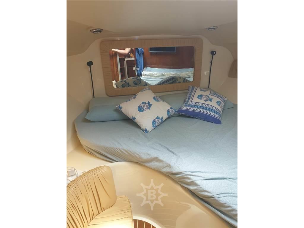 Notas internasNotas de la instrumentaciónAngolo barra, Bussola, Contamiglia, Ecoscandaglio, Plotter con antenna GPS (Lowance elite), Radio VHF.Notas de armamentoAllestimento tecnico e di coperta:Allarme motore, Doccia esterna, Elica di prua - bow thruster (maggiorata 180 mm), Flap idraulici (N°2), Luci di cortesia (azzurre), Passerella (idraulica Besenzoni), Piattaforma (in teak), Pompa di sentina automatica, Pompa di sentina manuale, Pozzetto Teak, Rollbar, Salpa Ancore Elettrico, Scaletta da bagno. Dotazioni domestiche di bordo: Aria condizionata, Clima reversibile, Impianto acque nere, Prese interne 12v, Prese interne 220v, WC marino elettrico. Dotazioni di sicurezza: Giubbetti di salvataggio. Intrattenimento: Impianto TV, Stereo. Cucina ed elettrodomestici: Fornello, Frigorifero esterno, Frigorifero interno. Tappezzerie: Cappottina, Copripozzetto, Copriscafo (totale 2023), Cuscineria di poppa (2021), Cuscineria di prua (20121 con copri cuscino), Cuscineria Pozzetto (2021). |