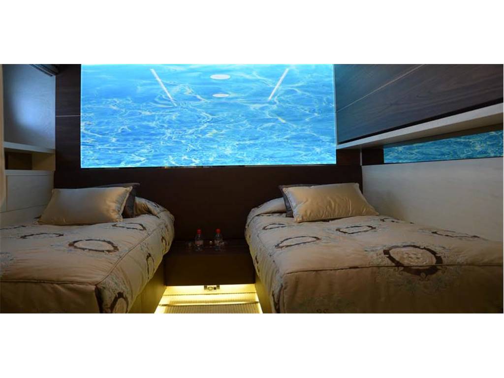Notas internasNumber of Cabins : 5 Sleeps : 10 Crew : 6 Crew Cabins : 3 Notas de la instrumentaciónElectronics & EquipmentPlotter : Nobletec Compass : Gyrocompass Radar : Furuno Depthsounder : Furuno WI-FI : Pepwave 4G dual-sim internet router Computer : 2 HP computers Creston/Prodigy iPad controlled entertainment system with multimedia server library Engine(s) : 2 x MTU 12V 4000 M93 - 3140 hp each 3140hp Gearboxes : ZF Steering : BCS Stabilizers : Naiad Generators : Kohler 70 kW Air conditioning : Climmare Marine 480.000 BTU Fresh water maker : Idromar - 300 L/h Propulsion : Twin-screw propellers Notas de armamentoDomestic AppliancesRefrigerator : 2 Frigomar Cooker : 1 Miele Dishwasher :1 Miele G8051 Microwave oven : 1 Miele Dumbwaiter : Available Washing machine : 2 Miele PT7135C Dryer : Miele PW6065 [VARIO] Deck Equipment Gangway : Available Windlasses : 2 bow windlasses Winches : 2 aft winches Crane : Garage crane for tender and toys Swimming ladder : Hydraulic Top : Automatic sun shade canopy for upper aft deck Barbeque : Custom BBQ grill area on upper aft deck Recreation : 4-person jacuzzi on upper deck aft Water Sports Equipment Tender(s) : 505 Williams 110 hp jet drive tender Seabob(s) : 2 Seabobs - F7 and F5S Jet Ski(s) : Yamaha WaveRunner 1800 cc XP Inflatables : Various water toys |