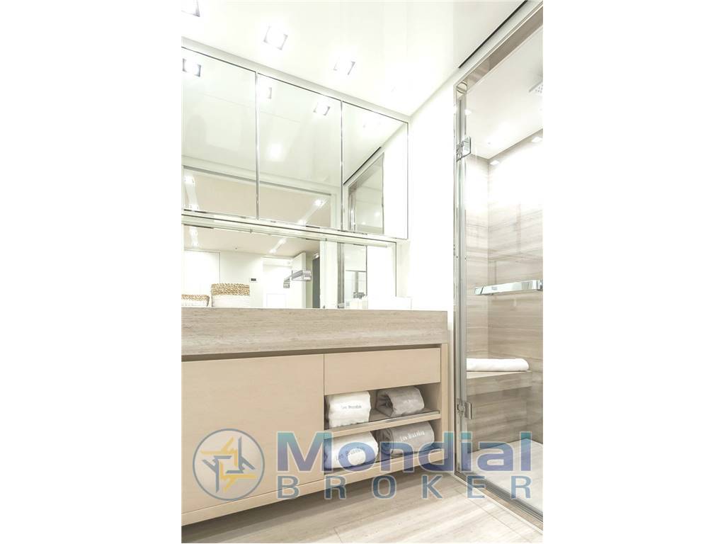 Swimming Platform: Electro-hydraulic lift system, deck in natural teak Gangway: Electro-hydraulic telescopic boarding gangway in natural teak Mooring Winches: 2 x Electrical capstans, 400VAC/50Hz 3-phase, 4kW controlled via local footswitches with single rotation direction Windlasses: 2 x Electrical windlasses, 400VAC/50Hz 3-phase, 4kW on stainless-steel plates flush with the main deck and locally controlled by wired remote control and chain wash Anchors: 2 x Galvanized steel anchors, 180Kg each Anchor Chains: 2 x 137,5m of 14mm chain with stud link 2 x Boat hooks 1 x 75m (246’) nylon rope (diameter 30mm) 2 x 25m (82’) nylon ropes (diameter 30mm) 2 x 20m (82’) nylon ropes (diameter 30mm) 8 x Cylindrical fenders 2 x Spherical fenders 8 x Fender hooks Manual swimming ladder in stainless steel AISI316 with teak steps Quay water socket Cockpit and Upper deck table Stern garage for tender and water sports |