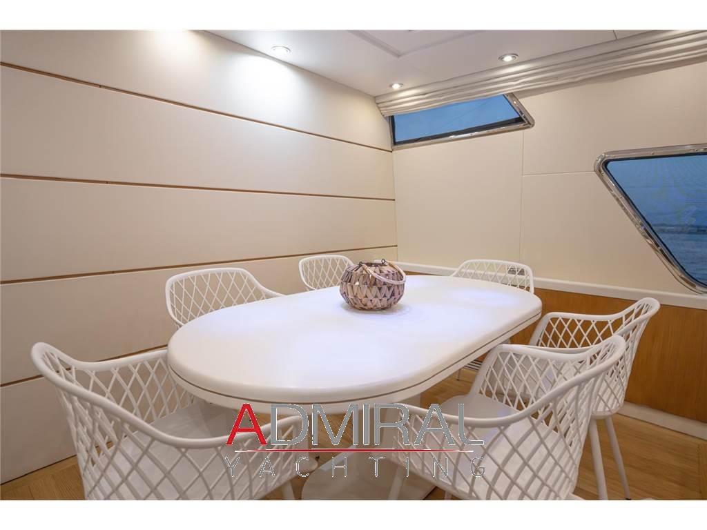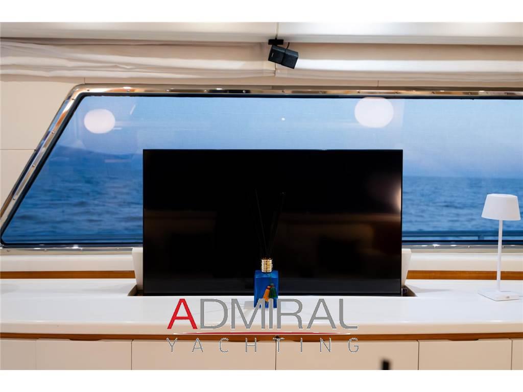 Notas de armamentoAllarme fumo/gas, Allarme motore, Allarme sentina, Ancora, Autoclave, Batterie, Camminamenti laterali in teak, Caricabatterie, Doccia esterna, Doppia timoneria, Elica di poppa - stern thruster, Elica di prua - bow thruster, Flap idraulici, Gruette, Impianto antincendio, Indicatori Flaps, Interfono, Lavaggio catena, Luci di cortesia, Passerella, Piattaforma, Pompa di sentina automatica, Pompa di sentina elettrica, Pompa di sentina manuale, Porta ingresso, Porta laterale, Pozzetto Teak, Presa 220V banchina, Raddrizzatore, Rollbar, Salpa Ancore Elettrico, Scaletta da bagno, Tavolo pozzetto, Tientibene con cancelletti, Tromba, Winch tonneggio di poppa, Winch tonneggio di prua, Altoparlanti, Antenna Satellitare TV, Aria condizionata, BBQ/ Grill, Bimini, Boiler, Clima reversibile, Collegamento internet, Cucina, Cuscineria completa, Cuscineria di poppa, Cuscineria di prua, Cuscineria fly, Cuscineria Pozzetto, Digitale Terrestre, Dissalatore, Forno, Frigorifero interno, ICE Maker, Impianto acque nere, Impianto TV, Inverter, Lavastoviglie, Meccanismo saliscendi per TV, Microonde, Piastra elettrica, Prese interne 12v, Prese interne 220v, Radio AM/FM, Riscaldamento, Serbatoio Acque Nere, Stereo, Telecamera, Telefono Interno, Teli copri finestra, Telo copriconsolle, Telo coprisedile, TV, WC marino elettrico, Winecooler