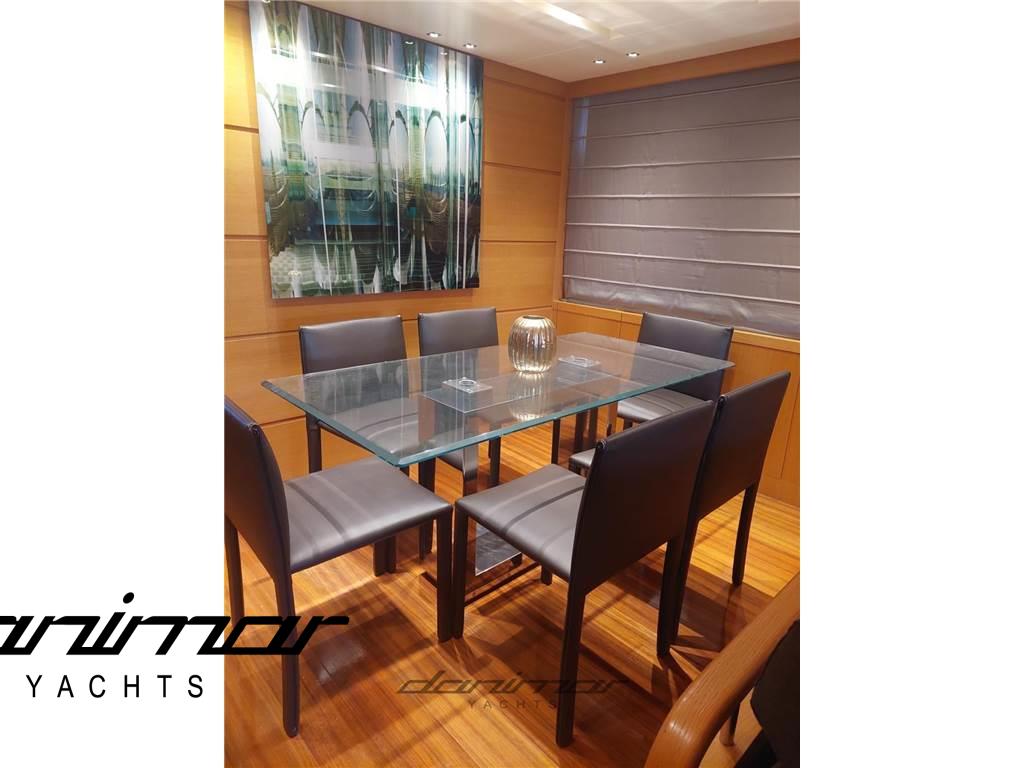 Notas internasNotas de la instrumentaciónAngolo barra, Bussola, Contamiglia, Ecoscandaglio, Fax, GPS, Interfono, Pilota automatico, Plotter, Radar, Radio VHF, SSB.Notas de armamentoAllestimento tecnico e di coperta:Autogonfiabile, Doccia esterna, Doppia timoneria, Flap idraulici, Lavaggio catena, Piattaforma, Pompa di sentina automatica, Pompa di sentina manuale, Raddrizzatore, Salpa Ancore Elettrico, Scaletta da bagno, Winch tonneggio di prua. Dotazioni di sicurezza: Giubbetti di salvataggio. Intrattenimento: Stereo, TV. Cucina ed elettrodomestici: Forno, Lavastoviglie, Lavatrice. Tappezzerie: Cuscineria fly. |