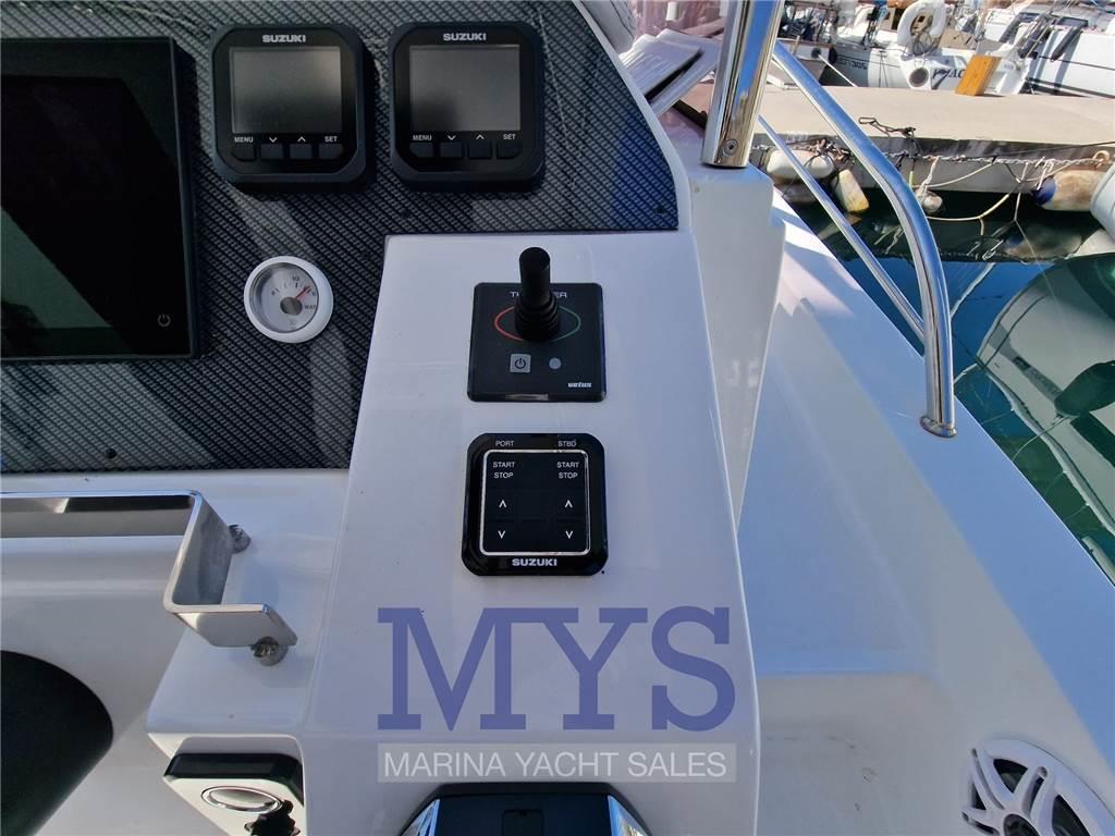 Notas internas1 Matrimoniale a V di prua 1 Toilette 1 Cucina Notas de la instrumentaciónAISAllarme fumo/gas Allarme motore Allarme sentina Ancora (con catena) Angolo barra Autoclave 4 Batterie (2 mot+2 serv) Bussola Caricabatterie (Victron ) Computer di bordo Contametri catena Doccia esterna (Calda/Fredda) Ecoscandaglio Elica di prua - bow thruster GPS Hard top Lavandino nel Pozzetto Luci di cortesia Luci di navigazione 2 Pannelli Solari (x 150 Kw) Piattaforma Plotter Pompa di sentina automatica Pompa di sentina manuale Porta ingresso Presa 220V banchina Raddrizzatore Radio VHF (ICOM) Salpa Ancore Elettrico Scaletta da bagno Tavolo pozzetto (Abbatibile) Tromba Notas de armamento4 AltoparlantiBimini Boiler (20 lt) Cucina (a gas) Cuscineria completa Cuscineria di poppa Cuscineria di prua Cuscineria Pozzetto Frigorifero esterno Frigorifero interno Impianto acque nere Inverter Microonde Prese interne 12v Prese interne 220v Radio AM/FM (Clarion) Serbatoio Acque Nere Stereo (Clarion) Telo copribarca (da consolle a prua) Telo copriconsolle Telo coprisedile WC marino elettrico |
