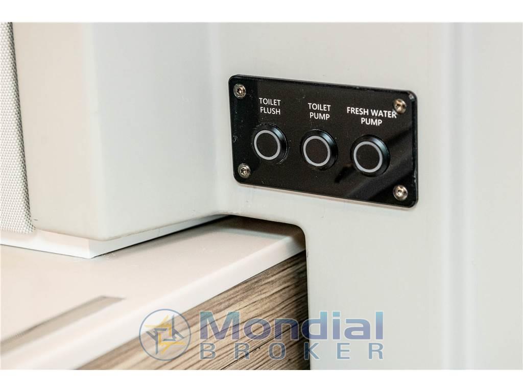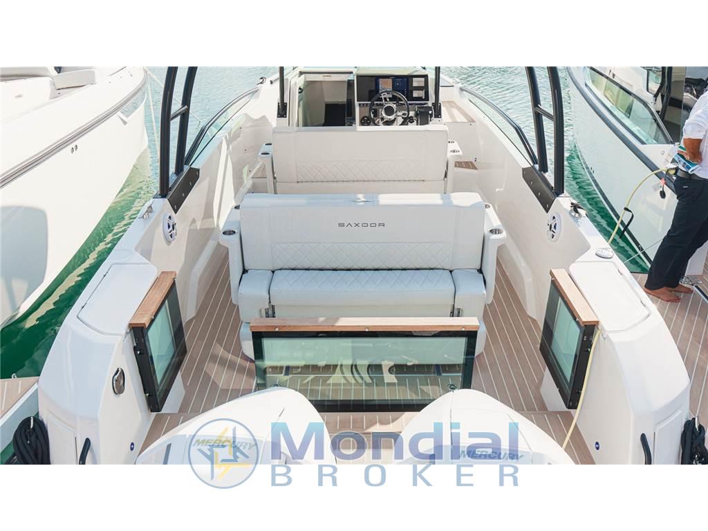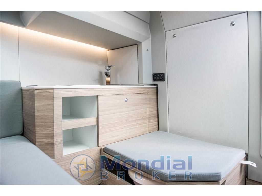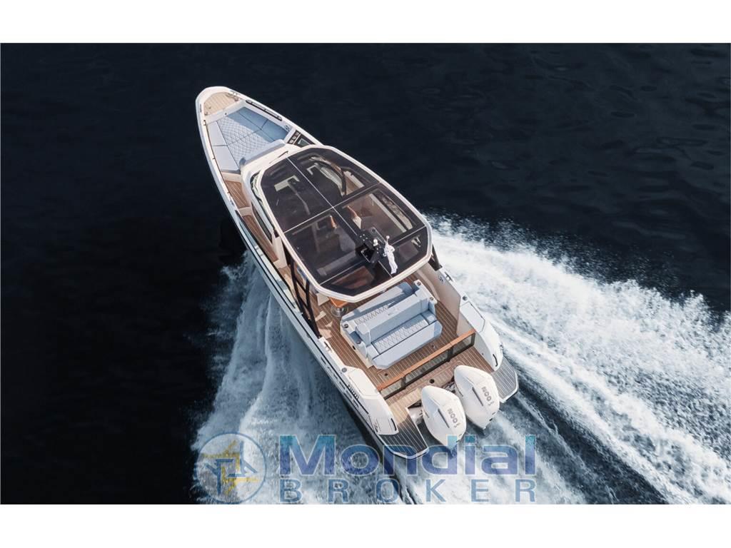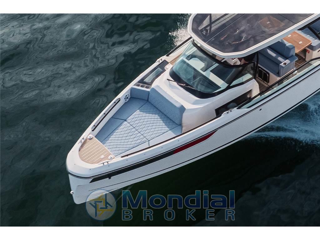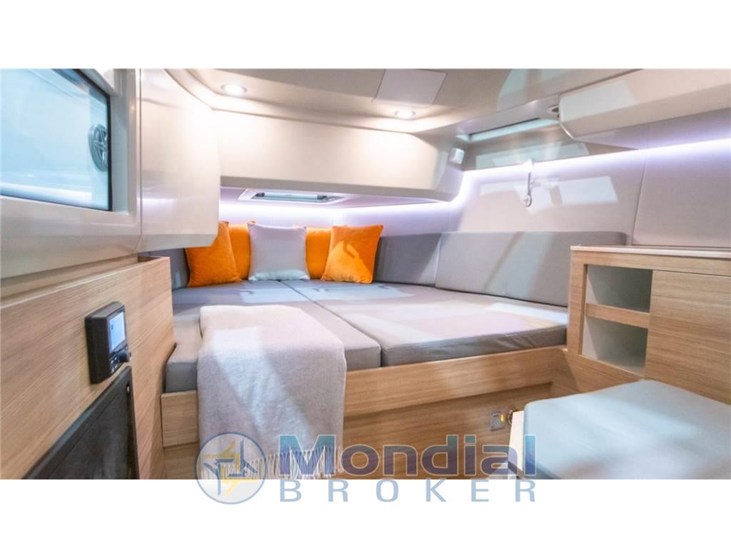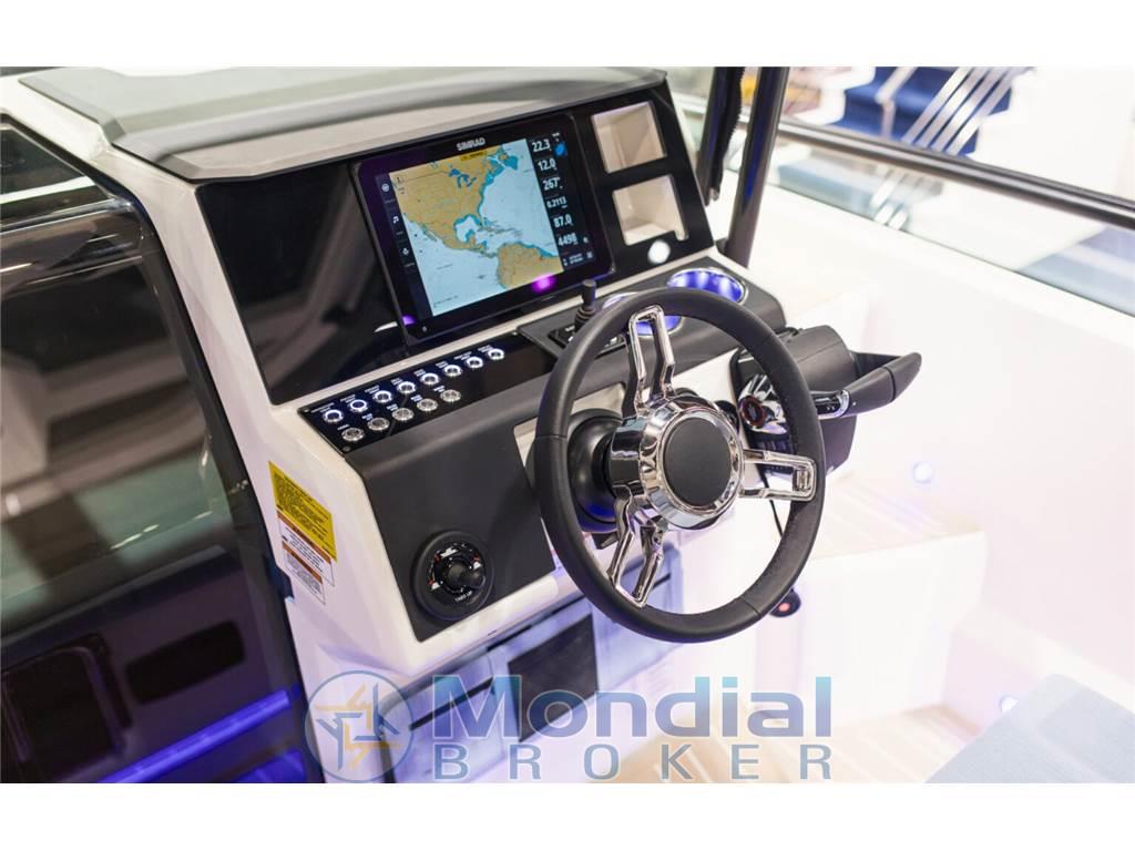 Notas de la instrumentación2 Allarme motore, Allarme sentina, Ancora, Batterie, Bussola, Comando motori elettronico, Computer di bordo (Mercury), Contamiglia (Simrad), Ecoscandaglio (Simrad), GPS (simrad), Luci di cortesia, Piattaforma, Plotter (Simrad NSX12), Pompa di sentina automatica, Porta ingresso, Sedile Copilota, Tromba Questa imbarcazione nuova è proposta in configurazione personalizzabile, con ampie possibilità di allestimento in base alle esigenze dell’armatore. Le dotazioni di bordo e gli accessori possono essere selezionati durante la fase di completamento per adattarsi al tipo di utilizzo desiderato. Tra gli optional disponibili è possibile includere impianti di climatizzazione, generatori/inverter, elettronica avanzata, stabilizzatori, sistemi audio, e diverse configurazioni per cucina, cabine e zona esterna. L’impostazione modulare consente di ottenere una barca equipaggiata secondo i più alti standard tecnici e di comfort, mantenendo flessibilità su finiture, materiali e impiantistica