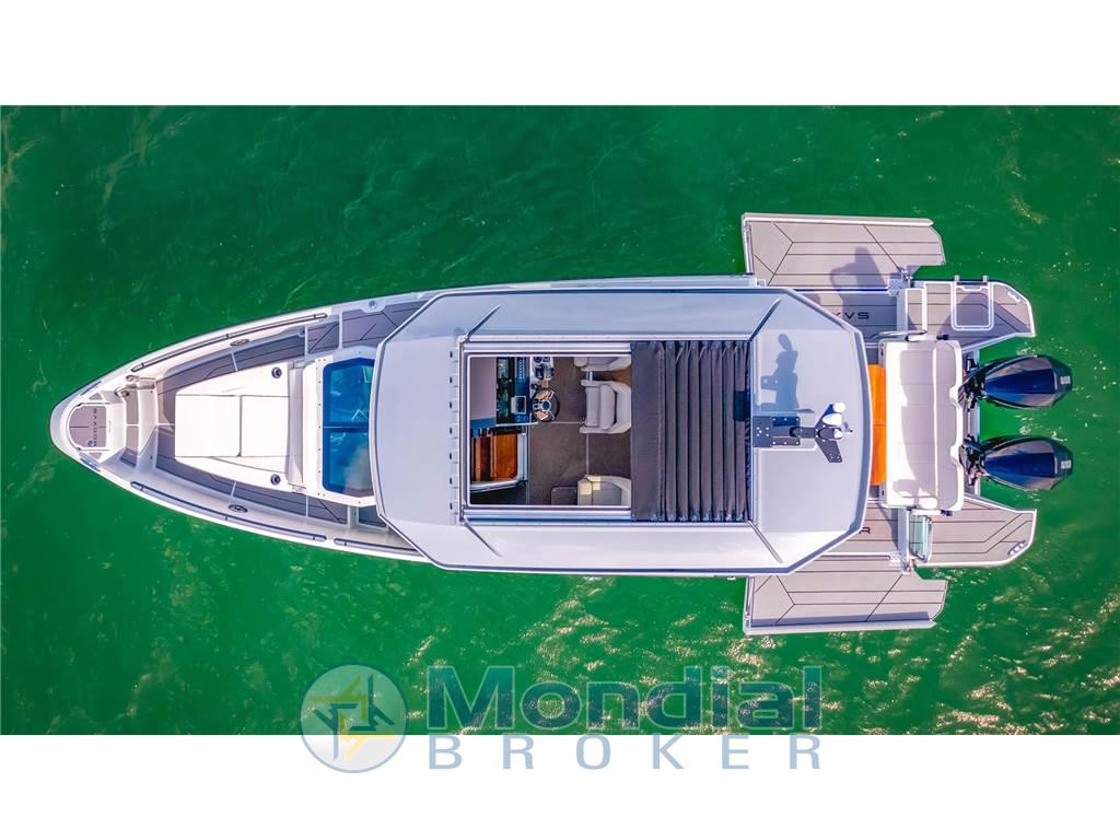 Notas de la instrumentación2 Allarme motore, Allarme sentina, 4 Batterie, Bussola, Comando motori elettronico, Computer di bordo (Mercury), Flap elettrici, Hard top, Impianto antincendio, Luci di cortesia, Piattaforma (con terrazze apribili), Pompa di sentina elettrica, Pompa di sentina manuale, Porta ingresso, Tromba Questa imbarcazione nuova è proposta in configurazione personalizzabile, con ampie possibilità di allestimento in base alle esigenze dell’armatore. Le dotazioni di bordo e gli accessori possono essere selezionati durante la fase di completamento per adattarsi al tipo di utilizzo desiderato. Tra gli optional disponibili è possibile includere impianti di climatizzazione, generatori/inverter, elettronica avanzata, stabilizzatori, sistemi audio, e diverse configurazioni per cucina, cabine e zona esterna. L’impostazione modulare consente di ottenere una barca equipaggiata secondo i più alti standard tecnici e di comfort, mantenendo flessibilità su finiture, materiali e impiantistica