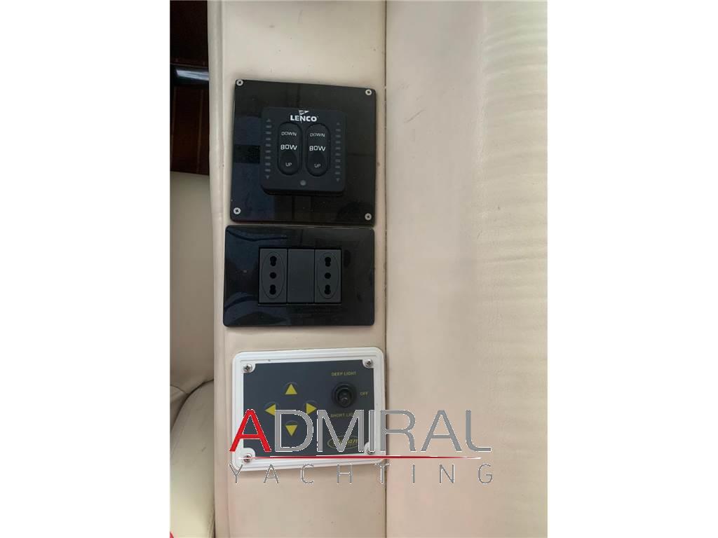 Notas internasNotas de la instrumentaciónAngolo di barra, Bussola, Contamiglia, Ecoscandaglio, GPS, Log, Pilota automatico, Plotter con antenna GPS, Radio VHF,Notas de armamentoAllarme motore, Allarme sentina, Ancora, Autoclave, Batterie, Caricabatterie, Doccia esterna, Elica di prua - bow thruster, Faro orientabile, Flap elettrici, Luci di cortesia, Passerella, Piattaforma, Pompa di sentina automatica, Pompa di sentina elettrica, Pompa di sentina manuale, Pozzetto Teak, Presa 220V banchina, Salpa Ancore Elettrico, Scaletta da bagno, Tientibene con cancelletti, Tromba, Altoparlanti, Aria condizionata, Boiler, Clima reversibile, Cucina, Cuscineria completa, Cuscineria di poppa, Cuscineria di prua, Cuscineria Pozzetto, Digitale Terrestre, Frigorifero interno, ICE Maker, Impianto acque nere, Impianto TV, Microonde, Pavimento interno in legno, Piastra in vetroceramica (INDUZIONE), Prese interne 220v, Radio AM/FM, Riscaldamento, Serbatoio Acque Nere, Stereo, Telecamera, Tendalino, TV, WC marino elettrico |
