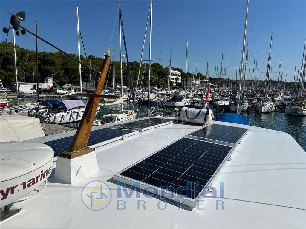 Notas internasCabina armatoriale a poppa tutto baglio con due letti singoli e bagno; doccia separata comunicante con bagno cabina ospiti; Cabina ospiti doppia poppavia; Cabina ospiti doppia a prua con bagno e box doccia. Notas de la instrumentaciónVHF, plotter GPS, Autopilota, Radar, Bussola, Tridata, Strumento del vento, Faro.Generatore Onan 9kW, Caricabatterie, Inverter, Batterie n.5x12V Notas de armamentoSalpancora elettrico.Boiler, 3 wc elettrici, Serbatoio acque nere, Radio/CD, Altoparlanti esterni, Aria condizionata/Riscaldamento, Frigorifero, Congelatore, Cucina, Forno, Cappa aspirante. Bimini, Tendalino di poppa, Cuscineria di prua e di poppa, Tavolo pozzetto, Tergicristalli, 2 Docce esterne, Scaletta bagno, Piattaforma bagno, Passerella, Gruette Tender, Tender 3,20mt, FB Honda 20hp. |
