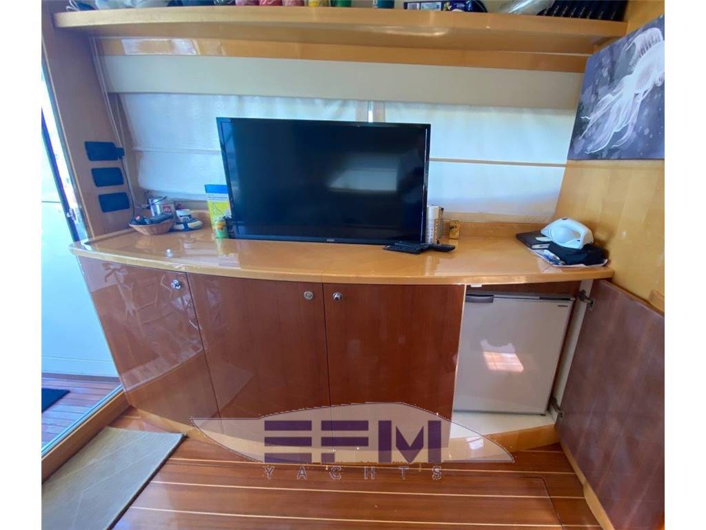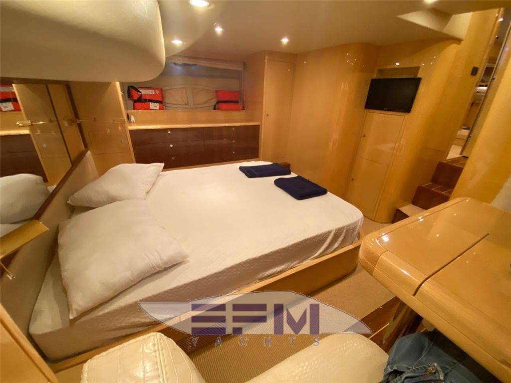 Notas internas1 MASTER CABIN ENSUITE FULL BEAN 1 VIP CABIN ENSUITE 1 GUEST CABIN ENSUITE 1 CREW CABIN SINGLE BED + 1 HEAD Master cabin King size bed Bedside reading lights (nr. 02) Carpets and undercarpet Cd Stereo Sony System with nr. 02 speakers Wood drawers under the beds Wood or imitation leather bulkheads (colour finish to be chosen from shipyard catalogue) Wood wardrobe (nr. 02) Curtains (fabrics to be chosen from shipyard catalogue) DVD Fabric headboard (fabrics to be chosen from shipyard catalogue) Halogen lighting Headboard mirror Imitation leather ceiling with wood decorations King size bed with mattress, pillows and bedspread Lateral leather fabric sofa (fabrics or leather to be chosen from shipyard catalogue) Refrigerator Sockets 24 220 volt Stainless steel opening portholes (nr. 04) TV LCD 15? Vanity dressing desk and chest of drawers with leather fabric stool (fabrics or leather to be chosen from shipyard catalogue) Wardrobe with shelves Master head Botticino marble counter tops Botticino marble floor Ceramic sink with hot/cold water mixer control Complete set of bathroom fittings Curtain (fabric to be chosen from shipyard catalogue) Electric ceramic toilet and bidet with hot/cold water mixer control Halogen lighting Holding water tank indicators Large plexiglass shower with hot/cold water mixer control Mirror in front of the sink Sockets 24/220 volt Stainless steel opening porthole (nr. 01) Varnished wood ceiling Varnished wood forniture Lacquered wood furniture and bulkheads. Wood lockers and shelves VIP Cabin Carpet and undercarpet Curtains (fabrics to be chosen from shipyard catalogue) Fabric leather headboard (fabrics to be chosen from shipyard catalogue) Halogen lighting Headboard mirror Imitation leather ceiling King size bed with pillows and bedspread Sockets 24/220 volt Sony stereo Cd system with nr. 02 speakers Stainless steel opening portholes (nr. 02) Tv socket. Wardrobe (nr. 02) Wood or imitation leather bulkheads (colour to be chosen from shipyard catalogue) VIP head Botticino marble counter tops Botticino marble floor Ceramic sink with hot/cold water mixer control Complete set of bathroom fittings Curtain (fabric to be chosen from shipyard catalogue) Electric ceramic toilet and bidet with hot/cold water mixer control Halogen lighting Large Plexiglas shower with hot/cold water mixer control Mirror in front of the sink Sockets 24/220 volt Stainless steel opening porthole (nr. 01) Varnished wood ceiling Varnished wood cabinet Wood lockers and shelves (varnished) Portside Guest cabin Curtain (fabric to be chosen from shipyard catalogue) Drawers under the beds Halogen lighting Imitation leather and wood bulkheads (colour to be chosen from shipyard catalogue) Lateral wood wardrobe Mirror Sockets 24/220 volt Stainless steel opening porthole (nr. 01) TV socket Two separate single beds with pillows and bedcovers Wood lockers and shelves Portside Guest head Botticino marble counter tops Botticino marble floor Ceramic sink with hot/cold water mixer control Complete set of bathroom fittings Curtain (fabric to be chosen from shipyard catalogue) Electric ceramic toilet and bidet with hot/cold water mixer control Halogen lighting Large plexiglass shower with hot/cold water mixer control Mirror in fron of the sink Sockets 24/220 volt Stainless steel opening porthole (nr. 01) Varnished wood ceiling Vtr bulkheads Wood lockers and shelves Botticino counter tops Complete wood furniture with drawers and shelves Four burner pyroceramic cooktop Halogen lighting Microwave convention oven Refrigerator 130 lt. Freezer C55 Stainless steel sinks with hot/cold water mixer control Sockets 24/220 volt Water level Wood bulkheads and floor Saloon Upper Floor Ivory leather sofa (Uniesse std) Parquet floor Curtains on sliding door and side windows (to be chosen from shipyard catalogue) Halogen lighting Main electric panel 24 V/220 V with generator control Round adjustable wood table Sony stereo Cd system with interior and exterior speakers Saloon Lower Floor Ivory leather sofa (Uniesse std) Cabinet with drawers and shelves Parquet floor Clock, thermometer and hygrometer Sony DVD system Curtains on sliding door and side windows (to be chosen from shipyard catalogue) Halogen lighting Imitation leather ceiling with wood decorations Refrigerator 60 lt. Sliding glass and stainless steel door Sockets 24/220 volt AKAI 40' TV LED Storage under the sofa Wood adjustable coffee-table Notas de la instrumentaciónMain Helm console stationAir horn Anchor windlass control and chain washer Antena GPS Raystar 125 Automatic pilot Robertson Raymarine Bilge pump switch Dashboard in black leather (standard Uniesse) Echo-speed log and water temperature indicator Raymarine Electrical controls for transmission and throttles Engine and gearbox oil pressure indicators (nr. 02) Engine consent lights (nr. 02) Engine oil pressure warning lights (nr. 02) Engine room water level warning siren Engine water temperature warning lights (nr. 02) Ergonomic leather helm seat Fuel and water level indicators GPS-chartplotter Raymarine E80 da 8.4? High-speed compass Hydraulic steering Switch for anchor lights Switch for lights on dashboard Switch for navigation lights Trim tabs with built-in indicators Vhf radio Windscreen wiper switch Wiper washer switch Flybridge Helm console Air horn Anchor windlass control and chain washer Electrical controls for transmission and throttles Engine oil pressure warning lights (nr. 02) and siren Engine room water level warning siren Engine water temperature warning lights (nr. 02) Fuel and water level indicators High speed compass Hydraulic steering Main engine start/stop button Raymarine echo-speed log and water temperature indicator Raymarine Repeater for automatic pilot Robertson Raymarine Repeater for Vhf Repeater for GPS-chartplotter Raymarine E80 da 8.4? Switch for lights on dashboard Trim tabs with built-in indicators Vtr consolle Engine room Automatic, manual fire extinguishing system with r